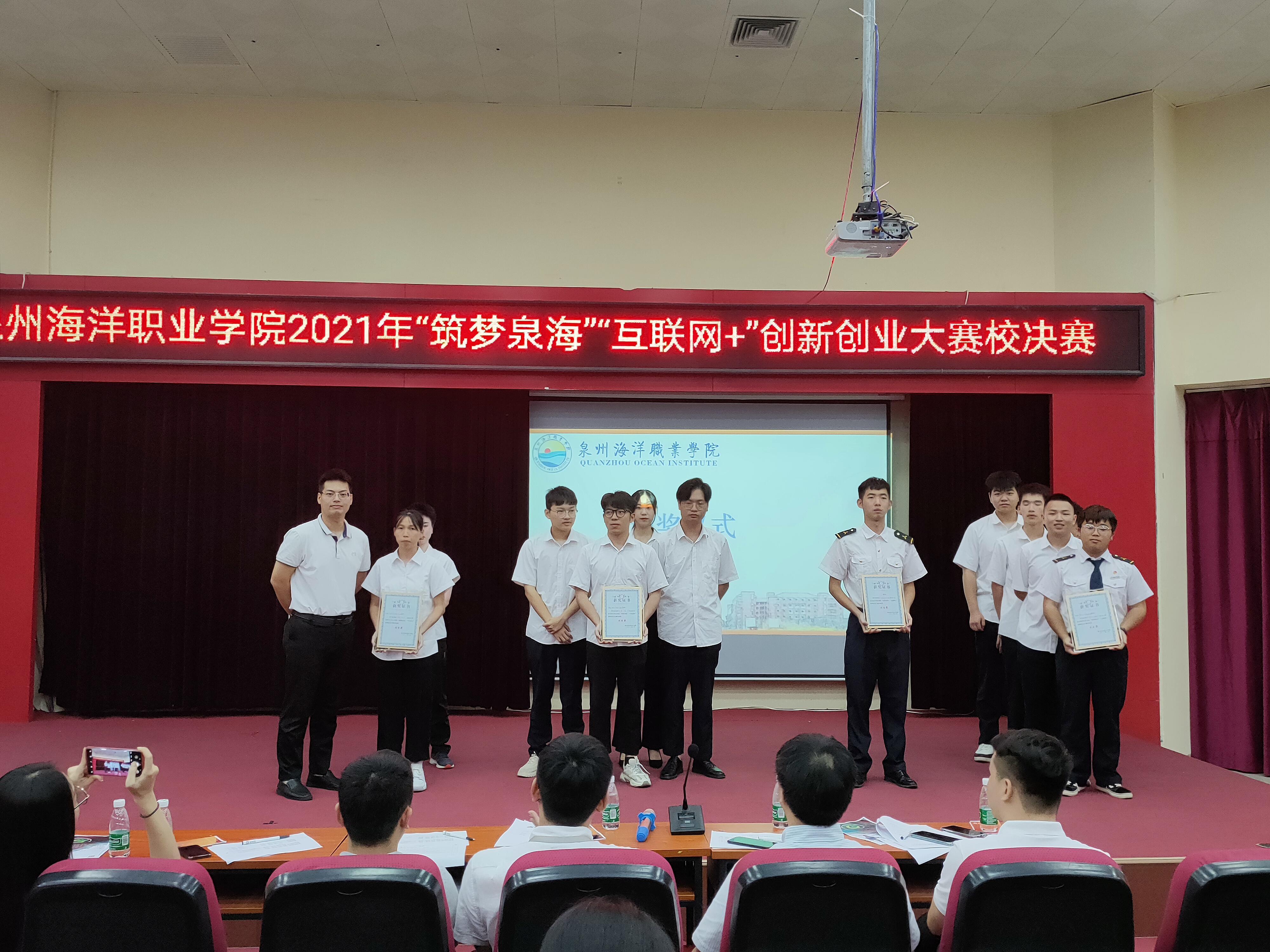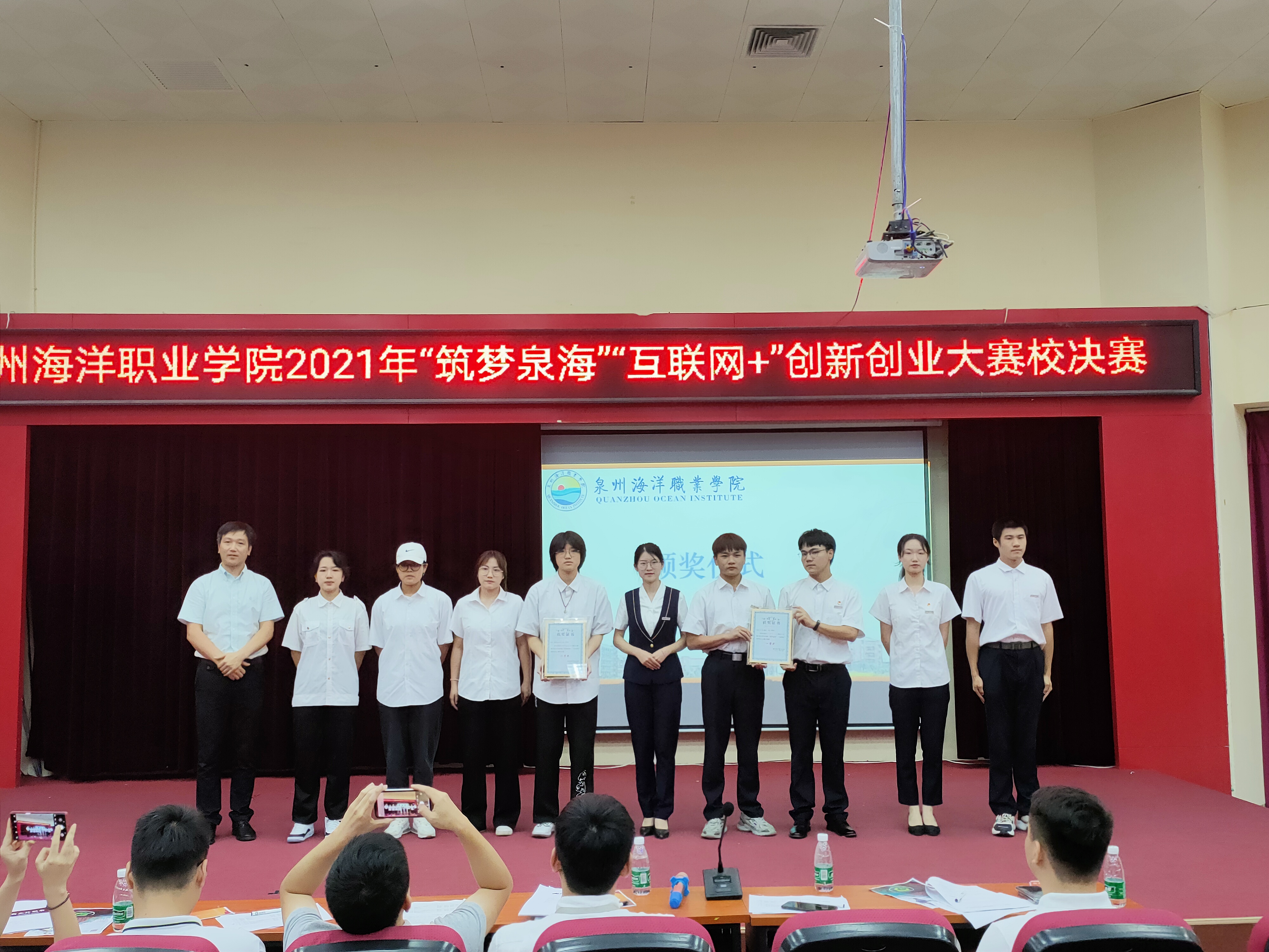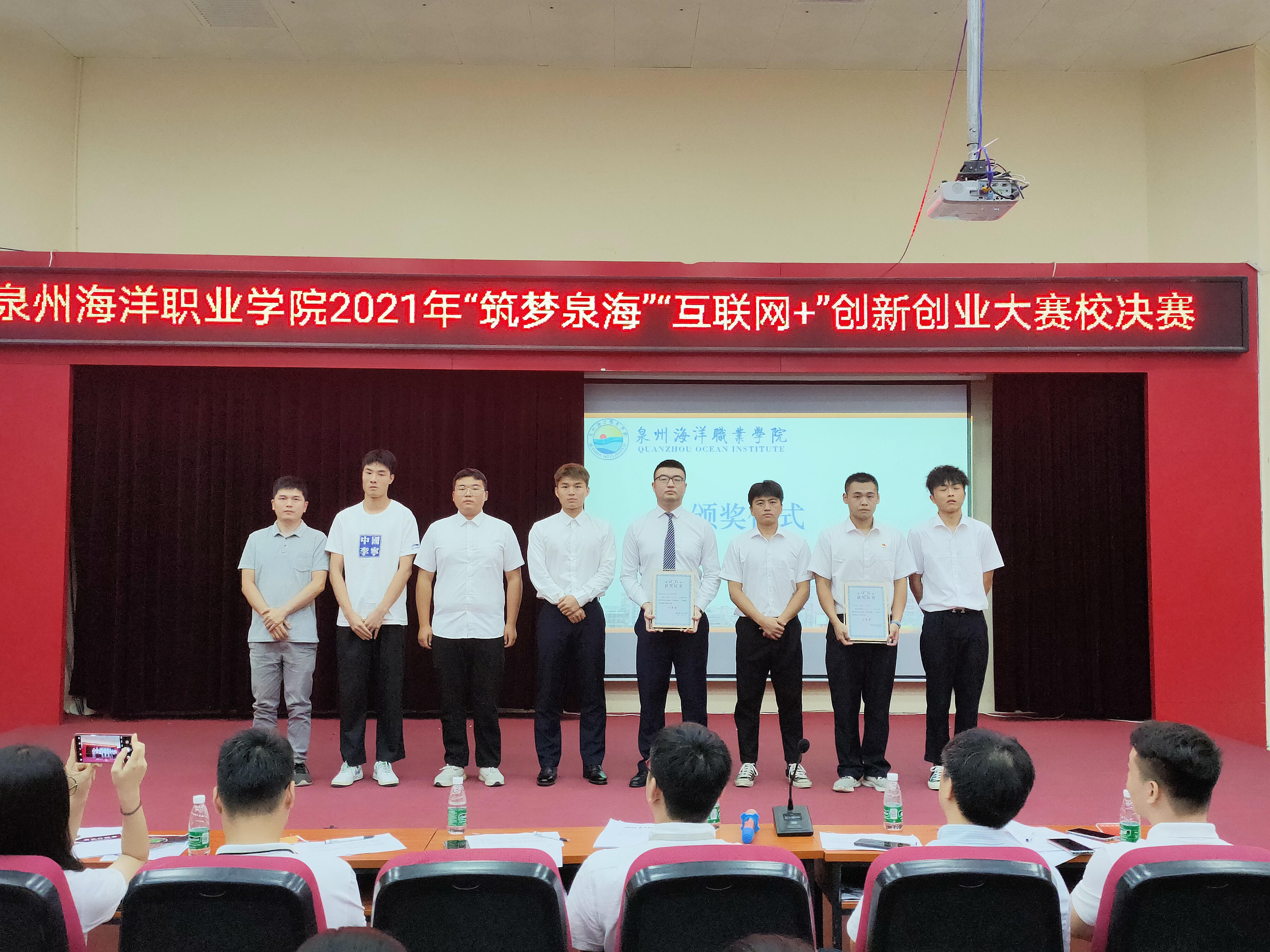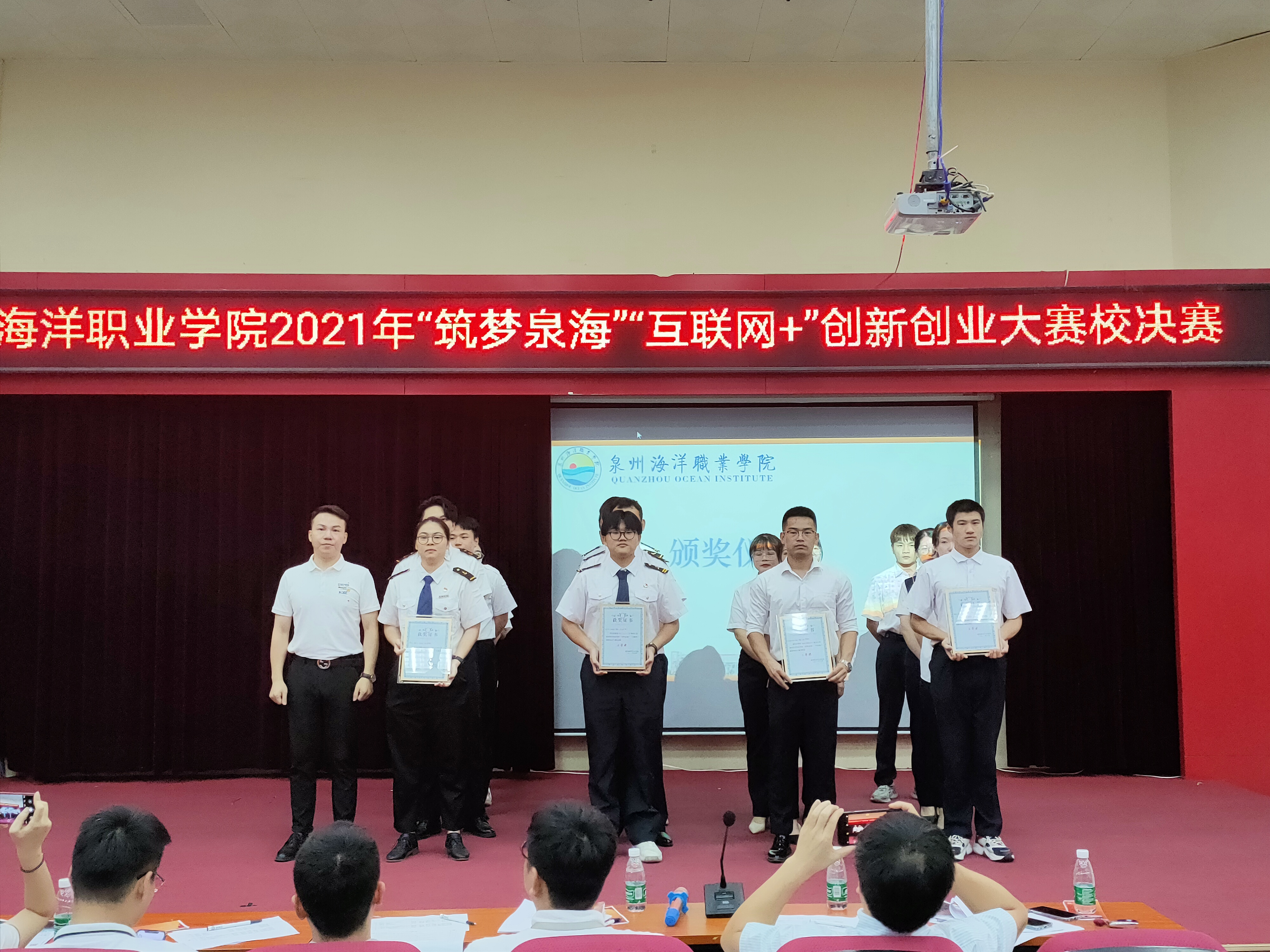 新闻中心讯(校团委陈智伟 陈娇 党委宣传部报道)2021年6月29日,我校2021年“筑梦泉海”“互联网+”创新创业大赛校决赛在2204报告厅内举行。我校副校长陈永鑫,向日葵教育集团总经理兼国赛集训营专家吴秀春、厦门泛海国际船舶管理有限公司高级主管陈宾鸿、福建锦壹位科技有限公司总经理夏东东、如是集团人事总监兼泉州人力资源管理师协会理事长陈斯超出席本次决赛。各学院书记、团委负责人、辅导员及学生代表参与本次活动。