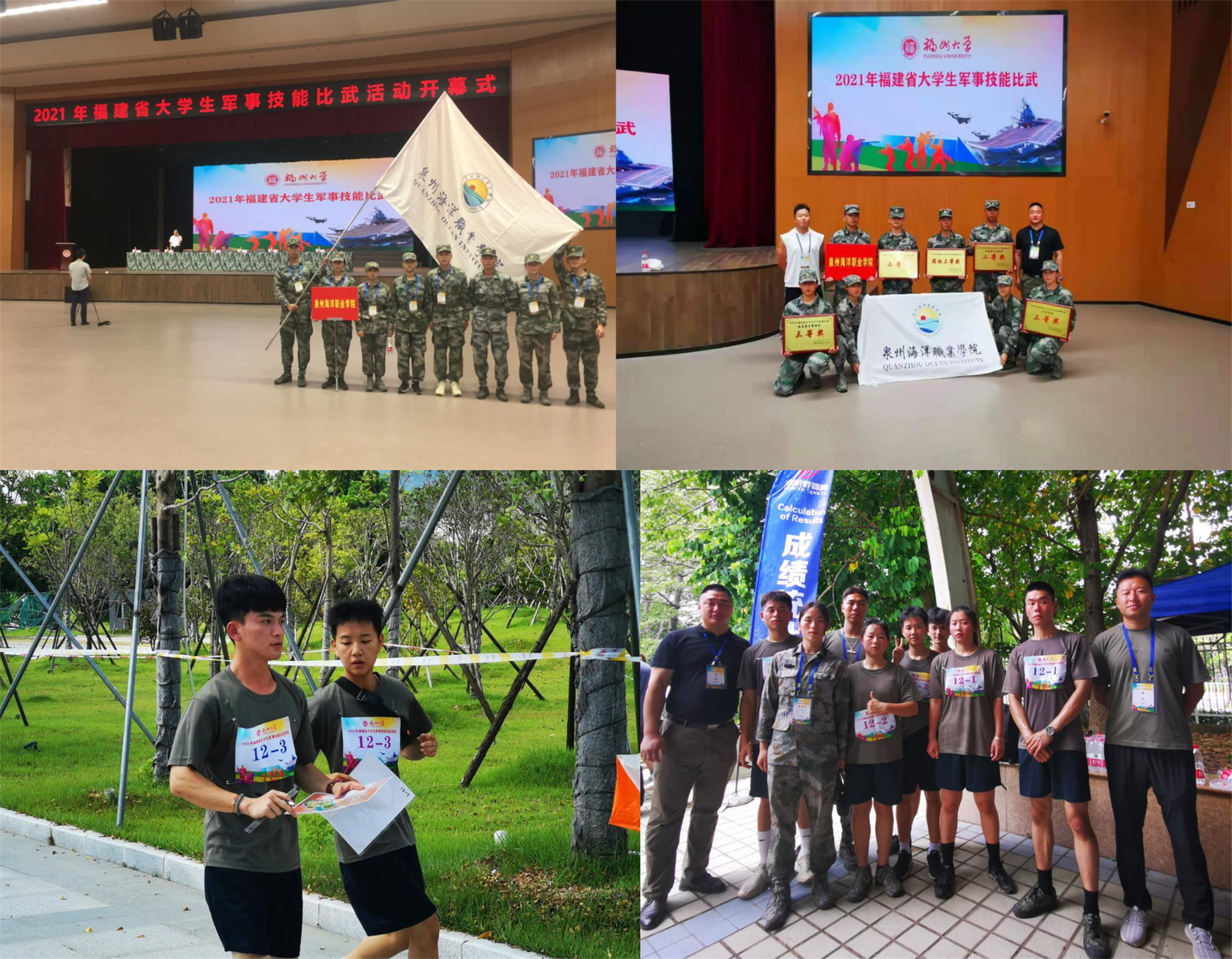 新闻中心讯(党委宣传部报道)2021年7月17日至19日,由省教育厅、省国防教育办公室主办,福州大学承办的2021年福建省大学生军事技能比武活动在福州大学举行。在指导老师国防教育中心贺充老师和休闲文旅学院车健老师的带领下,我校代表队在本次比赛中表现优异,夺得轻武器分解结合三等奖、识图用图三等奖、基础战术二等奖、手榴弹定点投掷二等奖等多项好成绩,并荣获团体三等奖。