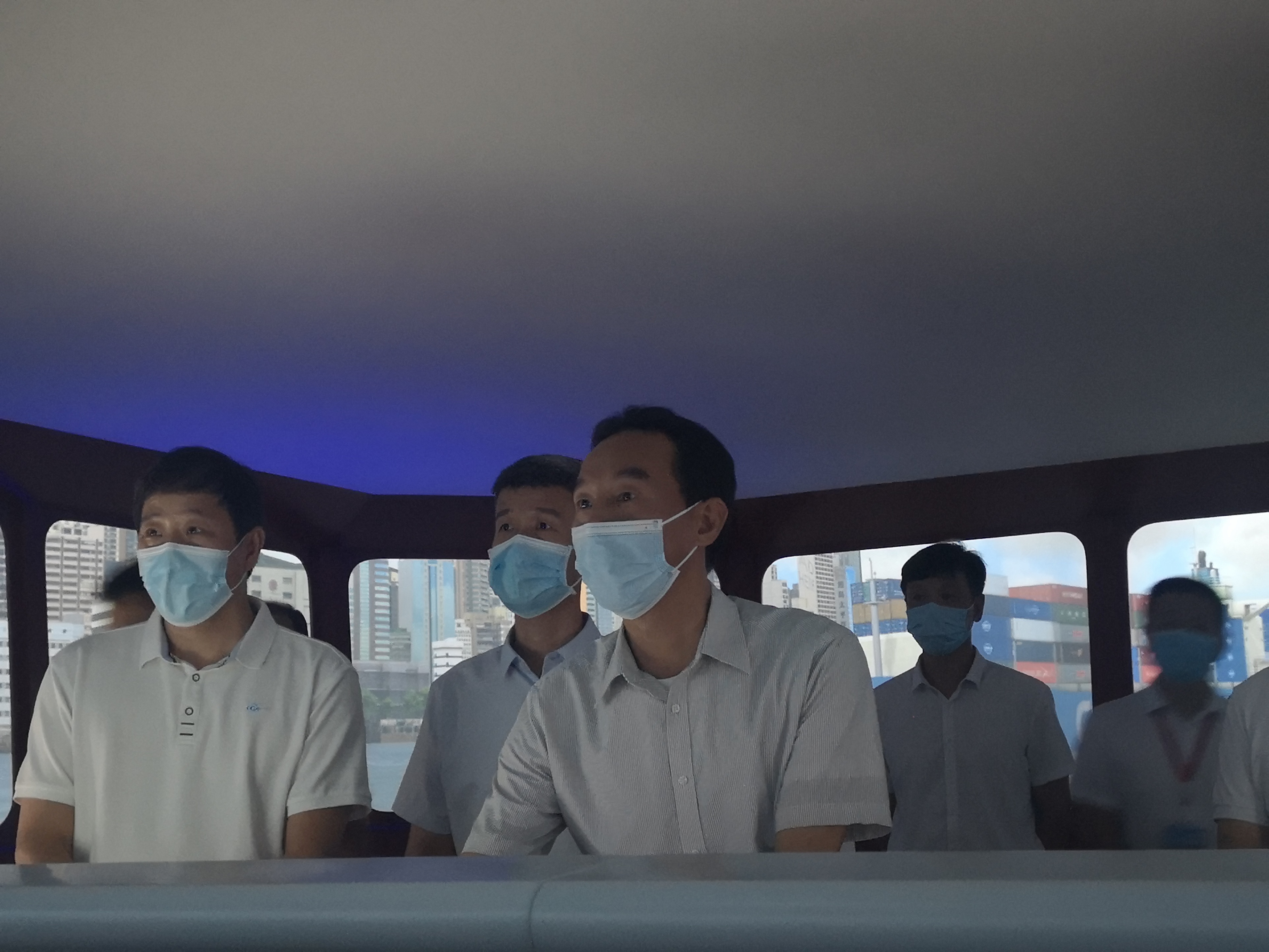 林再生组长一行实地参观校园,了解学校建设情况,并重点参观了海权红馆、360模拟器等实训场所。来访领导对我校办学至今的成果表示高度肯定。
