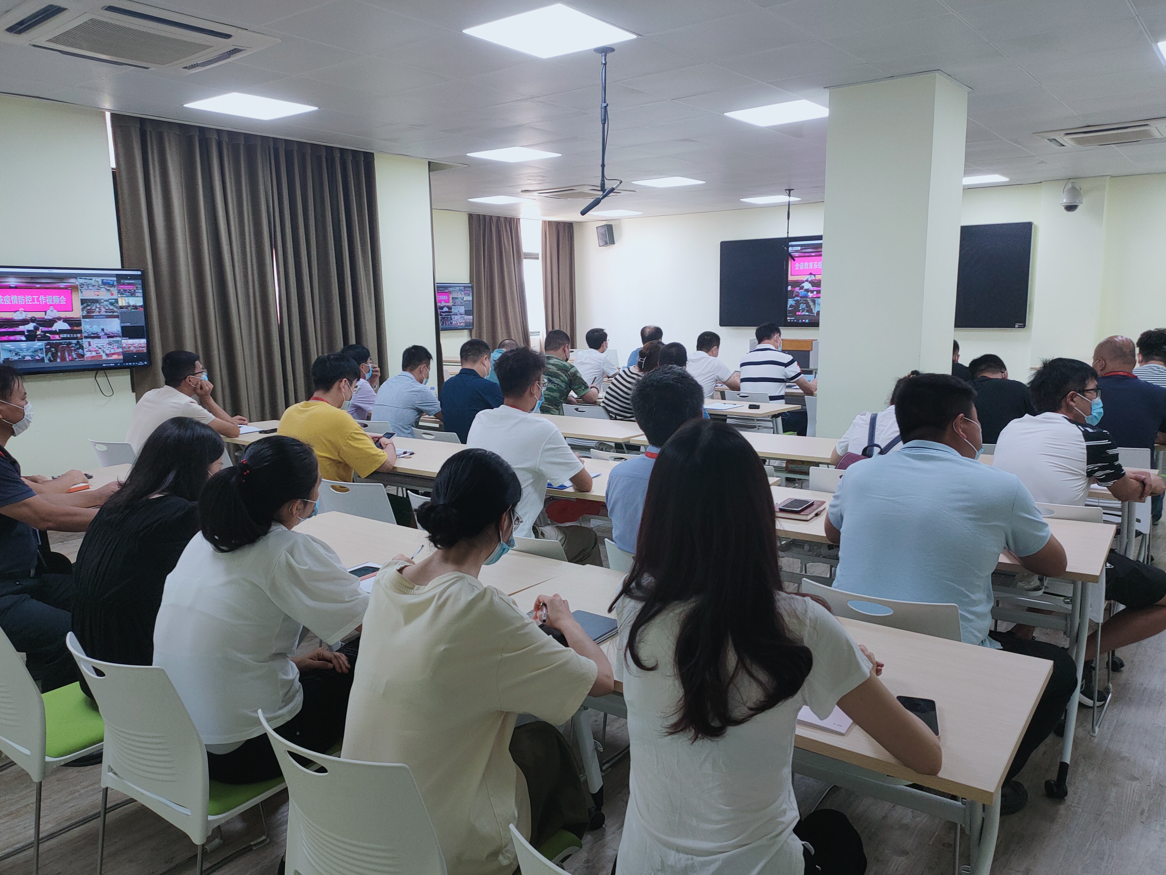 新闻中心讯(党委宣传部报道)9月13日11时30分,全省教育系统疫情防控工作视频会议在福州召开,我校于智慧教室设分会场,校领导朱国辉、梁松刚、钱学东、刘锦辉、张超、李明灿,校长助理蔡永鸿,各行政部门负责人及各二级学院(包括产业学院)领导参与会议。