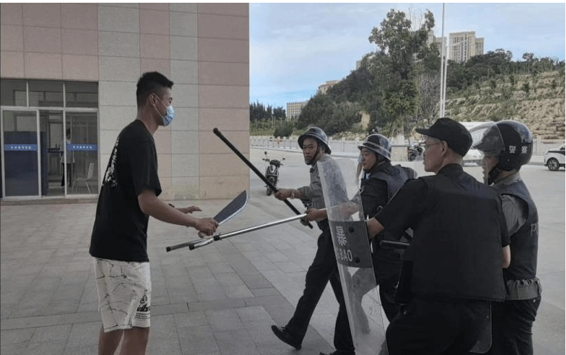 演练中,我校工作人员按照既定方案扮演“歹徒”持刀强行从北门闯入校园,意图行凶伤人,威胁校内师生安全。我校保安员迅速启动应急机制,使用“一键报警”系统报警,通过警用对讲机呼叫周边校园安保力量支援,并利用防暴器械和战术配合控制“暴徒”。此外,保安员迅速疏散人员,封锁现场。110指挥中心接到学校报警后,立即指派派出所民警赶赴现场进行依法处置。民警在学校保安员、联勤联动单位保安员配合下采取有效措施,果断制服“歹徒”并带离现场,成功处置此次突发事件。