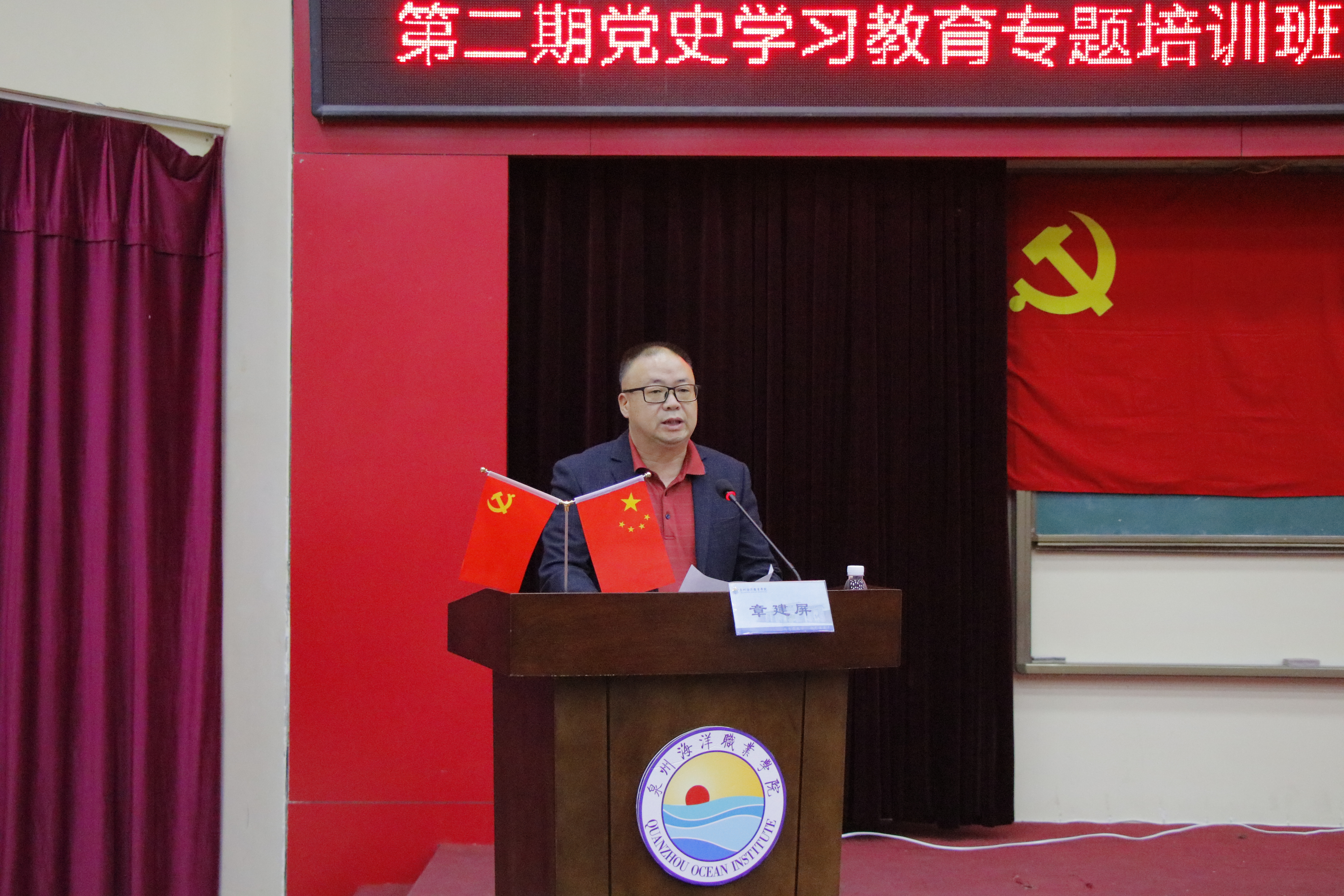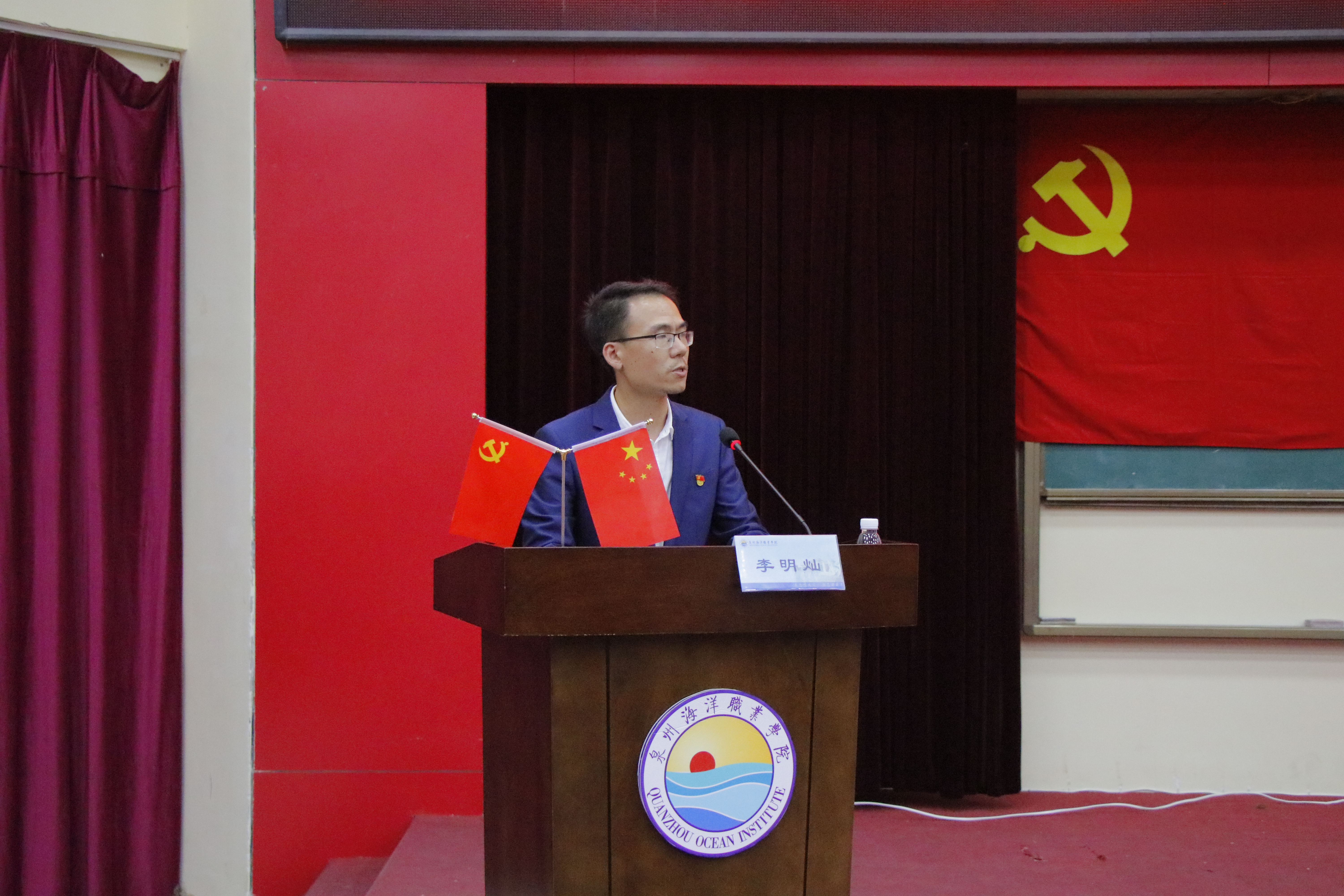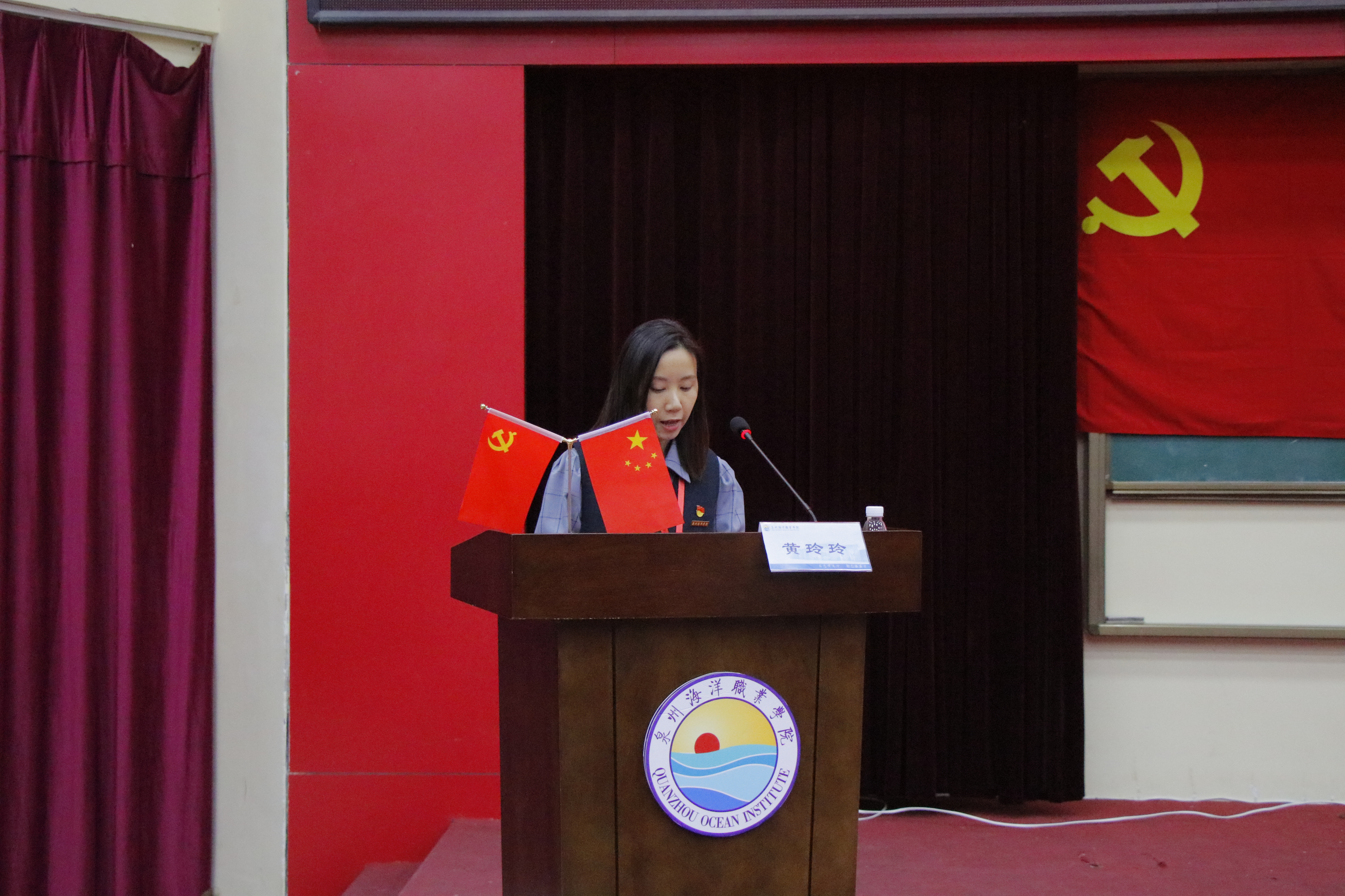 党政办公室主任章建屏宣读《关于成立中共泉州海洋职业学院委员会第三届大学生党建助理团的决定》