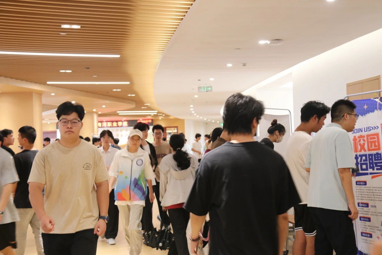 活动旨在为学生提供更多的实习锻炼机会,在用人单位和我院学子之间搭建双向选择的平台。本次招聘会汇聚了近20家用人单位,提供电商主播、设备技术员、游戏3D建模师、室内设计师助理、视频剪辑师、光学产品技术员等一千多个优质实习就业岗位数量。参加招聘会的同学手持精心准备的简历,在各个企业的展位前自发地排起长队,有序地与企业招聘人员深入沟通与交流,认真寻找优质岗位。