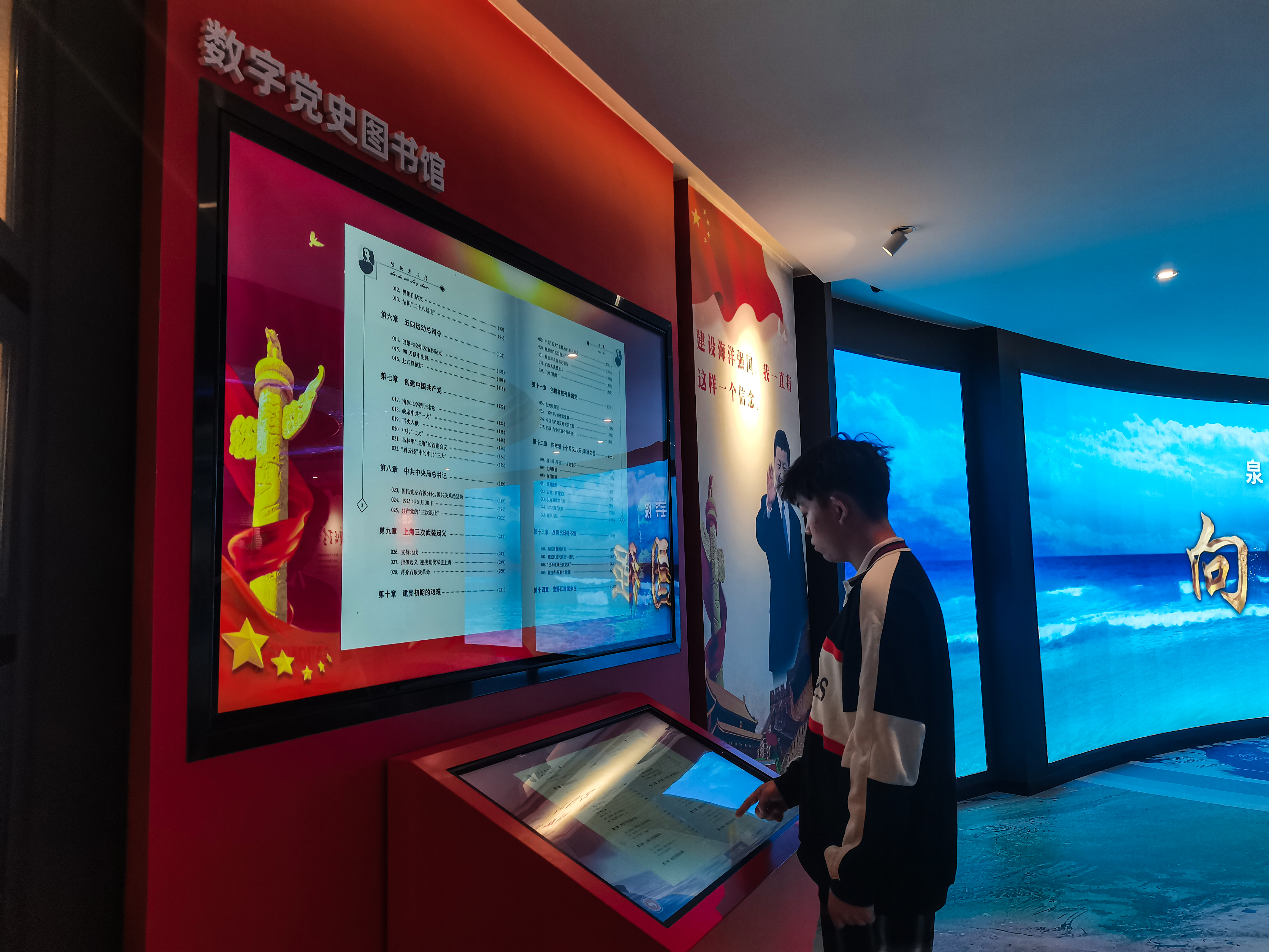 在校党委指导下,马克思主义学院充分发挥我校海权红馆教育功能,结合时政教学要点集中讲授“一个呼唤海权的时代”专题课程。在现场教学中,马院思政教师结合海权红馆的海权浮雕、大潮滂滂、巍巍巨轮、求索漫漫、浩浩海疆五个主题板块分别讲授了海权跌宕三部曲、中国造船自主创新之路、百年党史伟大征程和红船精神、国内外航海史以及海洋强国之路。引导同学们能够理解红馆蕴藏的深刻教育意义,通过回望中华海权经历的挫折与辉煌,描绘中华民族在中国共产党引航下建设海上强国、实现民族复兴宏伟蓝图的壮阔景象。教育青年学生肩负历史使命,坚定前进信心,立大志、明大德、成大才、担大任,努力成为堪当民族复兴重任的时代新人。