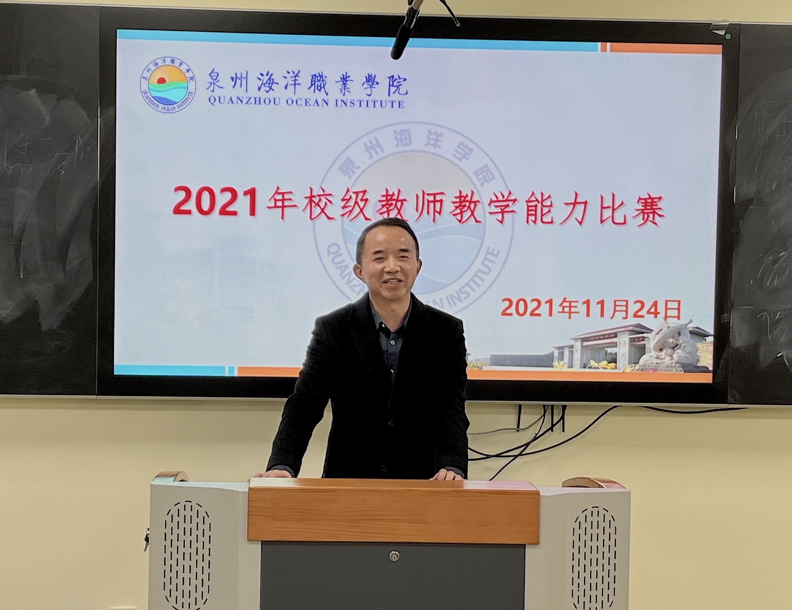 新闻中心讯(教务处 邱妮娜供稿 党委宣传部报道)为加强教师队伍建设、提升教师教育教学能力,11月24日上午,我校于智慧教室举行2021年校级教师教学能力比赛决赛,本次比赛评委团队由校长朱国辉、副校长钱学东、副校长刘锦辉、副校长杨雄、副书记李明灿、教务处副处长郑玉花和各二级学院负责人组成。评委团队经过网络初评和现场决赛评审,共评出一等奖作品2件、二等奖作品3件、三等奖作品5件。