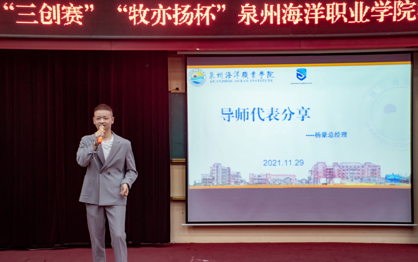 导师代表杨豪总经理以自身经历的实践经验为例,鼓励同学们勇于创新,敢于实践,相较于空洞的理论,实践更能丰富同学们的创业思维,引导和帮助同学树立创业意识、提高创业能力,扎实有效地推进创业工作。