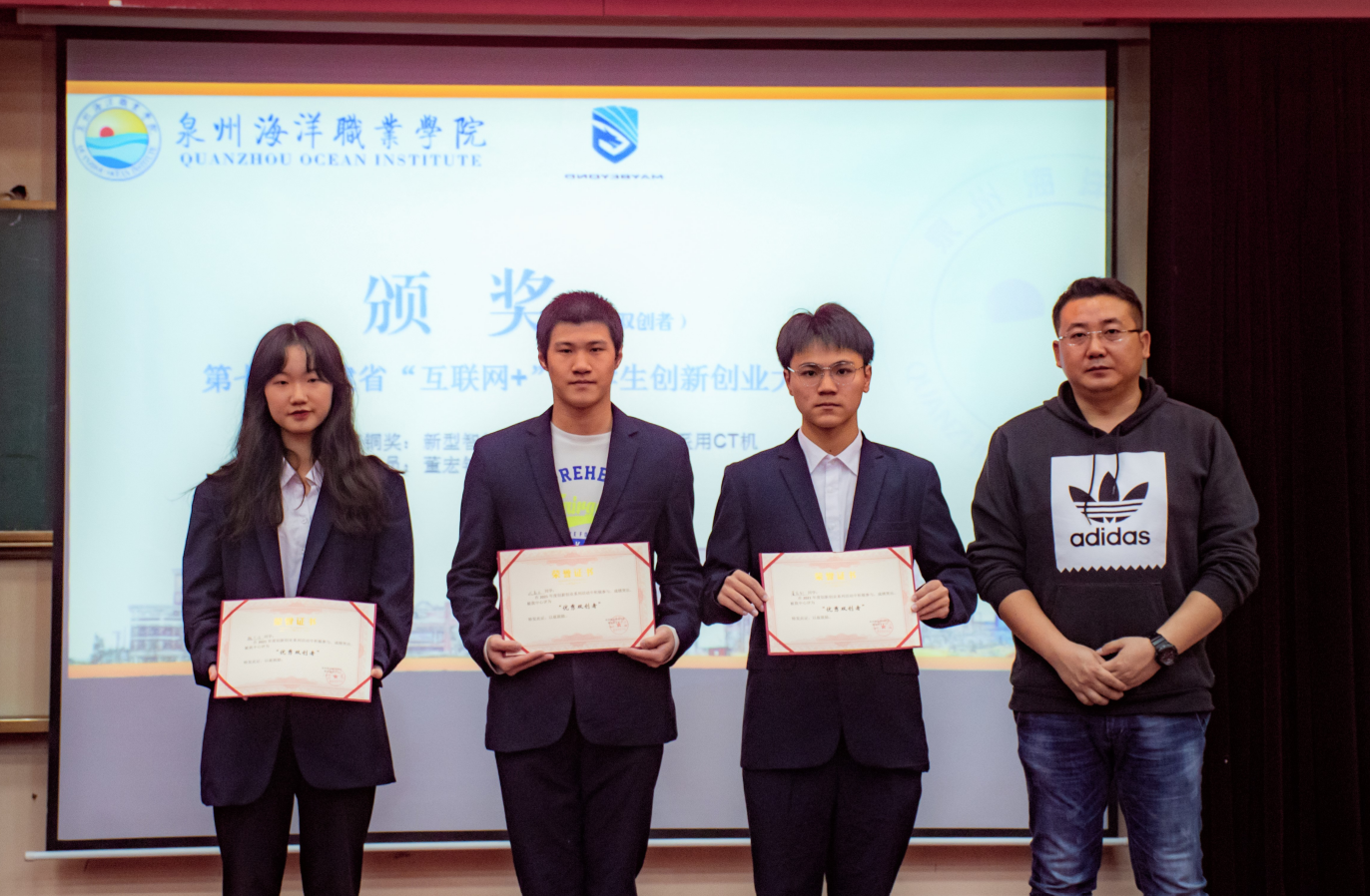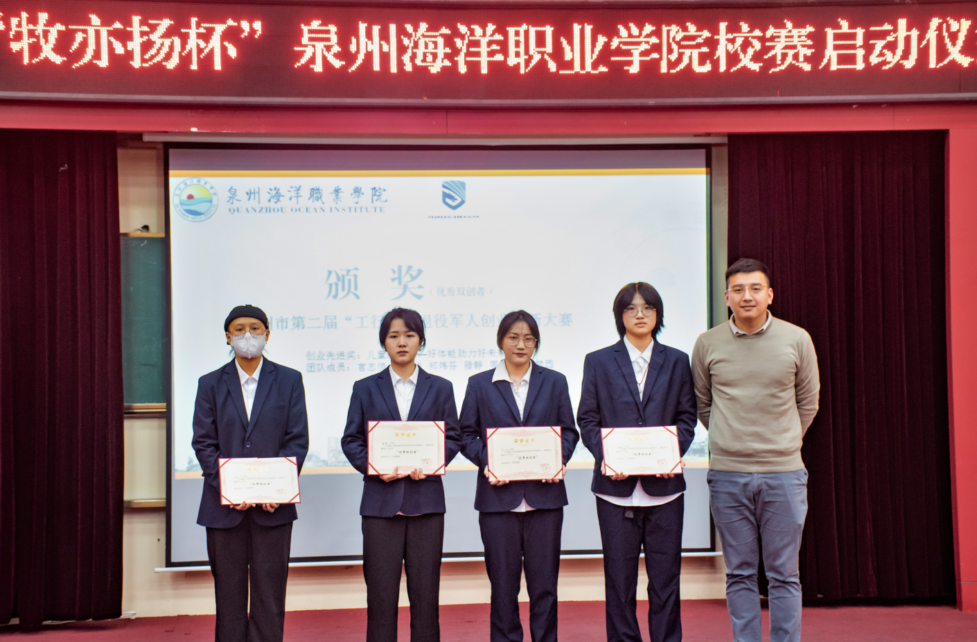 • 第一组:《儿童新天地-好体能助力好未来》项目获得泉州市第二届“工行杯”退役军人创业创新大赛创业先进奖,团队成员:官志恒、魏艾洁、郑炜芬、滕静、周子薇、汪梦西