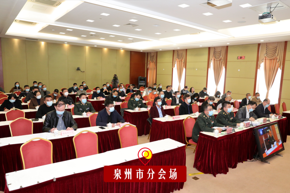 在泉州市分会场,常务副市长黄景春、军分区副司令员王永春宣读2021年度全省征兵工作表彰名单,军分区司令员高宏总结2021年征兵工作中,对我校“国防后备班试点”取得的成效给予肯定,对我校征兵工作模式高度赞扬。市征兵领导小组组长、市长蔡战胜对取得先进工作表彰的单位及个人表示祝贺,并对2022年征兵工作做出部署。我校副校长张超参加泉州分会场会议。