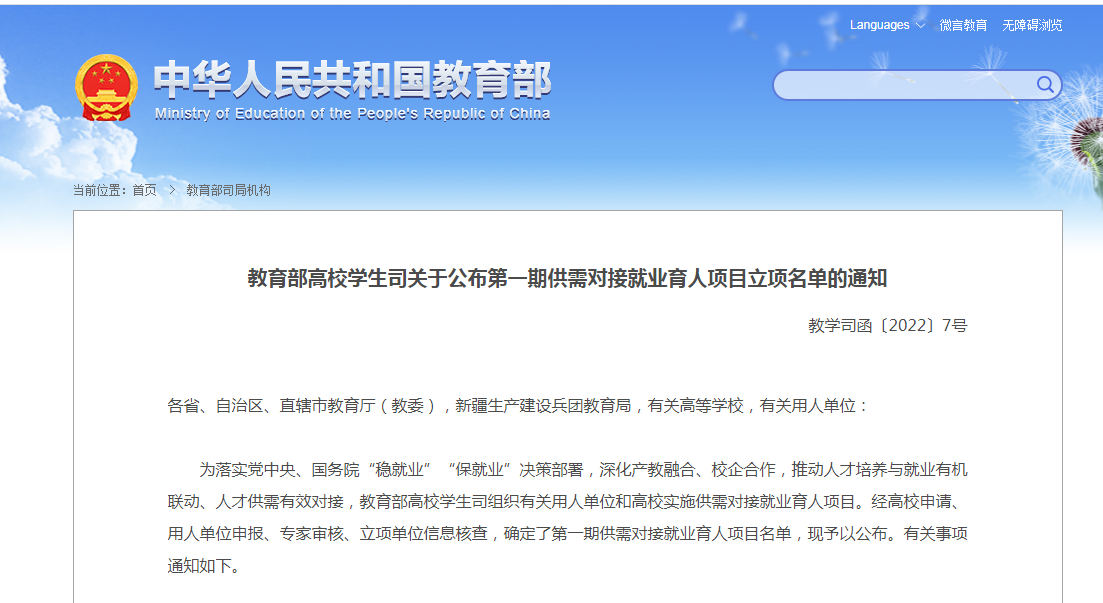 新闻中心讯(对外合作部 郑天明供稿 党委宣传部报道)近日,教育部高校学生司公布第一期供需对接就业育人项目立项名单,我校申报的《乡村振兴新农人直播电商培养体系建设》和《定向培养培训提升跨境电商专业人才综合素质就业能力》项目喜获立项。