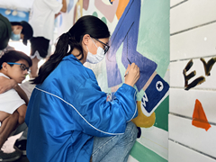 “在实训周里,我想用艺术的方式为美丽校园建设贡献自己的一份力量。”艺术设计五年制20级的张同学这样说。在艺术设计专业教师郭长磊、丁晨泰、张璎瑛、蔡庆恩的指导下,同学们用自己的一双巧手在三栋宿舍楼下绘制主题壁画,引来众多老师、同学的围观、点赞。