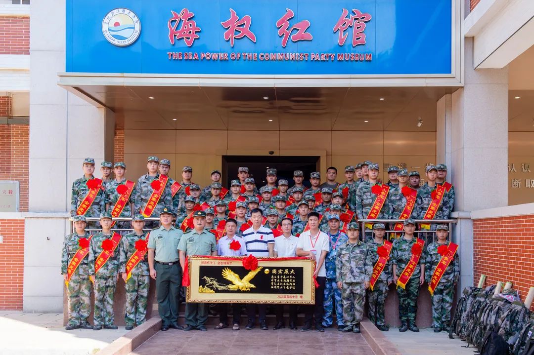 (新闻中心讯)正青春,当兵去!9月13日,我校在国内首个以海权为主题的党建思政馆——海权红馆为47名今年应征入伍的同学举行欢送会,旨在重温爱国主义教育,希望同学们以此为起点开始军旅生活。我校校长朱国辉、副书记、副校长李明灿、学工部部长张君、武装部部长苏良城、国防教育学院书记李艺鹏、副书记贺充、经济管理学院副书记陈合喜出席会议,直招军士22人、义务兵12人、预备役13人及家长代表参加了会议。会议由学校武装部部长苏良城主持。