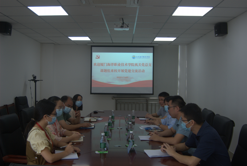 (新闻中心讯机关党支部供稿 校党委宣传部报道)9月16日,厦门海洋职业技术学院党支部立项《嘉庚精神融入高校党建品牌建设的路径研究》课题组林志敏一行4人,到我校调研交流高校基层党建工作。我校副校长、机关党支部书记刘锦辉携支部委员们与课题调研组成员进行了座谈。