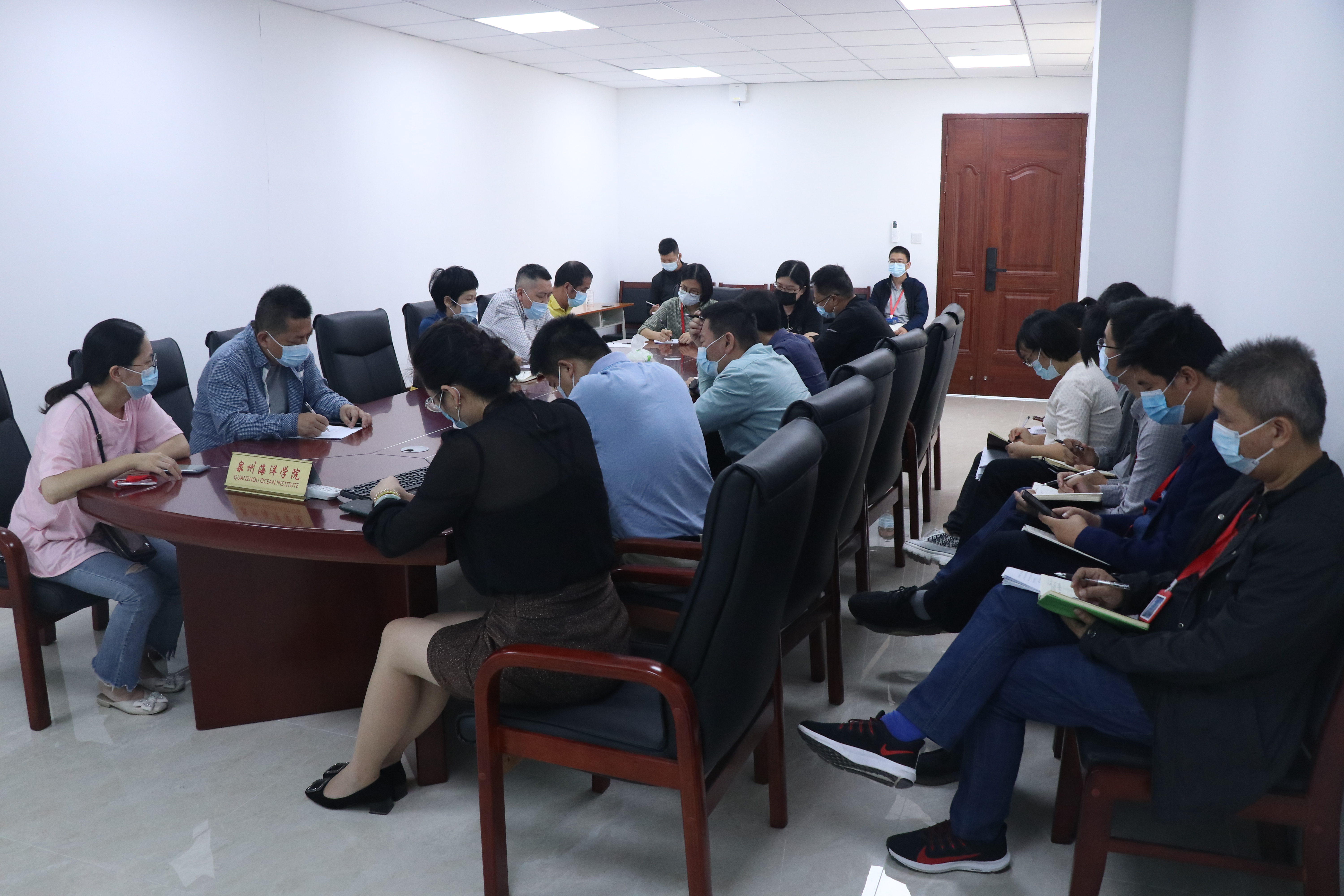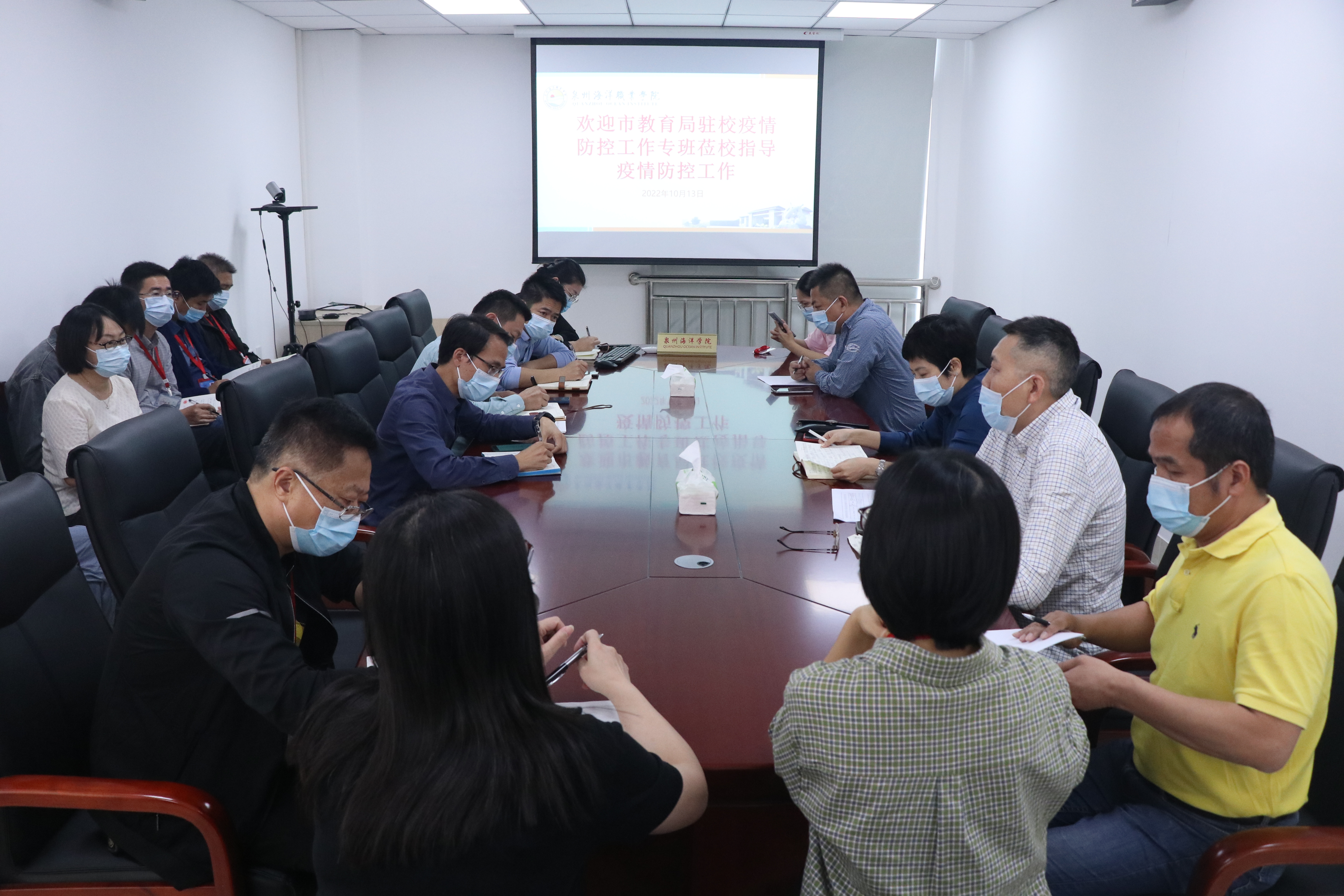 (新闻中心讯 党委宣传部刘诗妍供稿 校党委宣传部报道)10月13日上午,石狮市人民政府副市长黄明瑄、石狮市教育局驻校疫情防控工作专班组长蔡芳攀一行莅临我校指导疫情防控工作。我校党委书记梁松刚,副校长、副书记李明灿,副校长陈东水以及学校疫情防控工作各小组负责人参加专题会议。