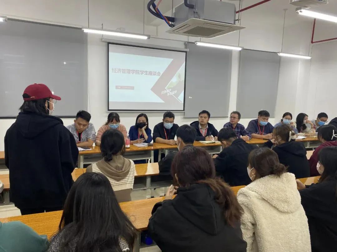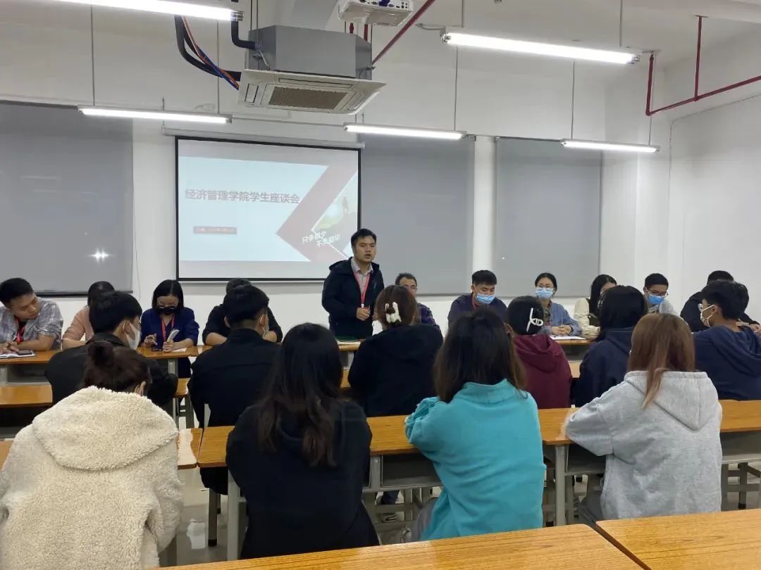 (新闻中心讯 经济管理学院许普照供稿 校党委宣传部报道)为进一步促进经济管理学院师生交流沟通,全面及时地了解学生对学校教育教学、管理服务等方面的意见和建议,真正做到围绕学生、关爱学生、服务学生,10月25日下午,经济管理学院在图书馆东侧401教室组织召开学生座谈会。