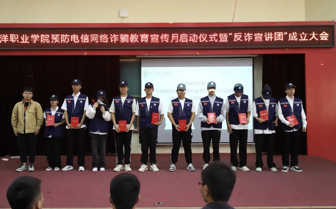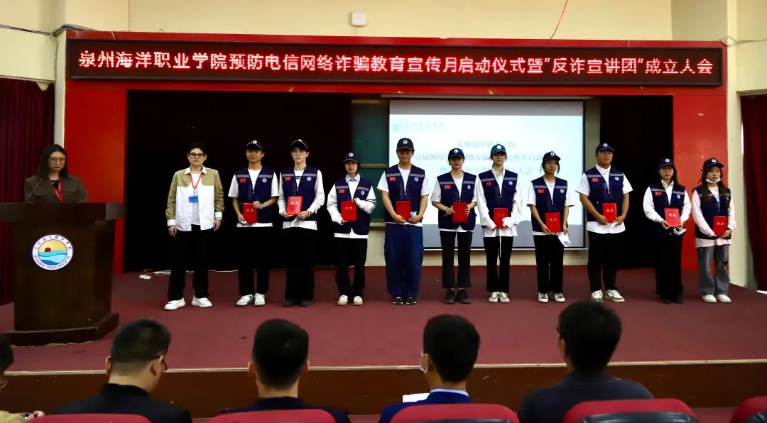 学工部安保中心主任郭晓军宣读了《关于成立泉州海洋职业学院反诈宣讲团的通知》《关于聘任泉州海洋职业学院反诈宣讲团宣讲员的通知》。