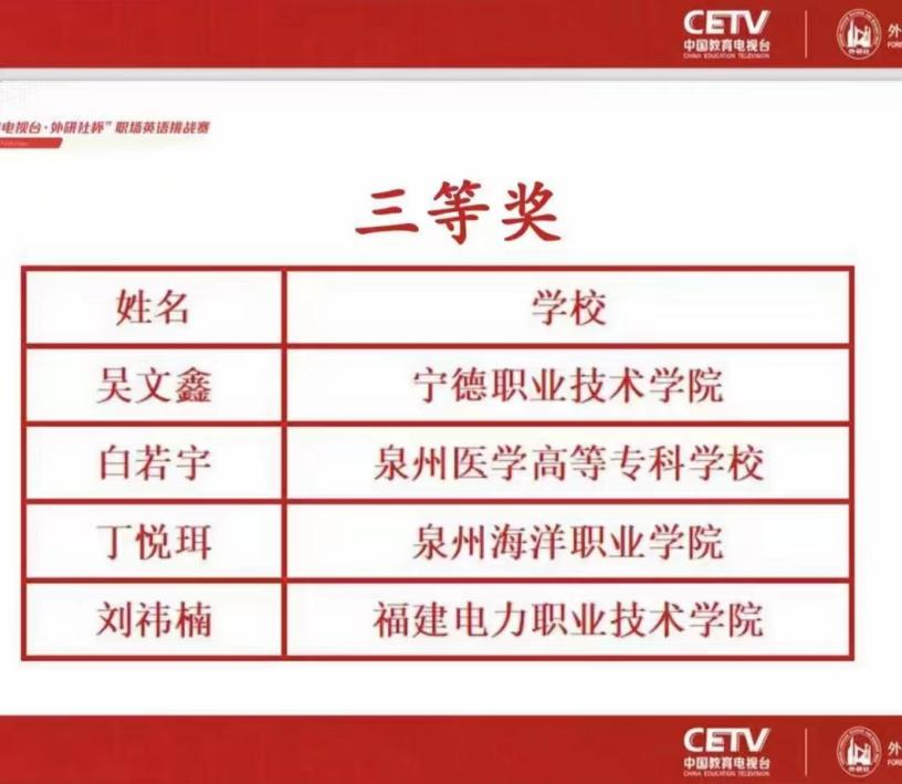 “中国教育电视台·外研社杯”职场英语挑战赛位于中国高等教育学会高校竞赛评估与管理体系研究工作组发布的2021全国普通高校大学生竞赛排行榜中,含金量高,是最具参赛价值的赛事之一。