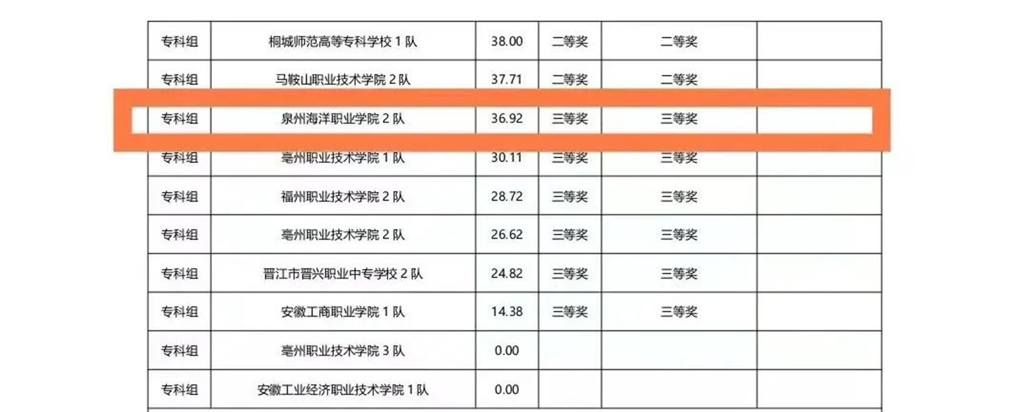 参赛人员及获奖情况如下: