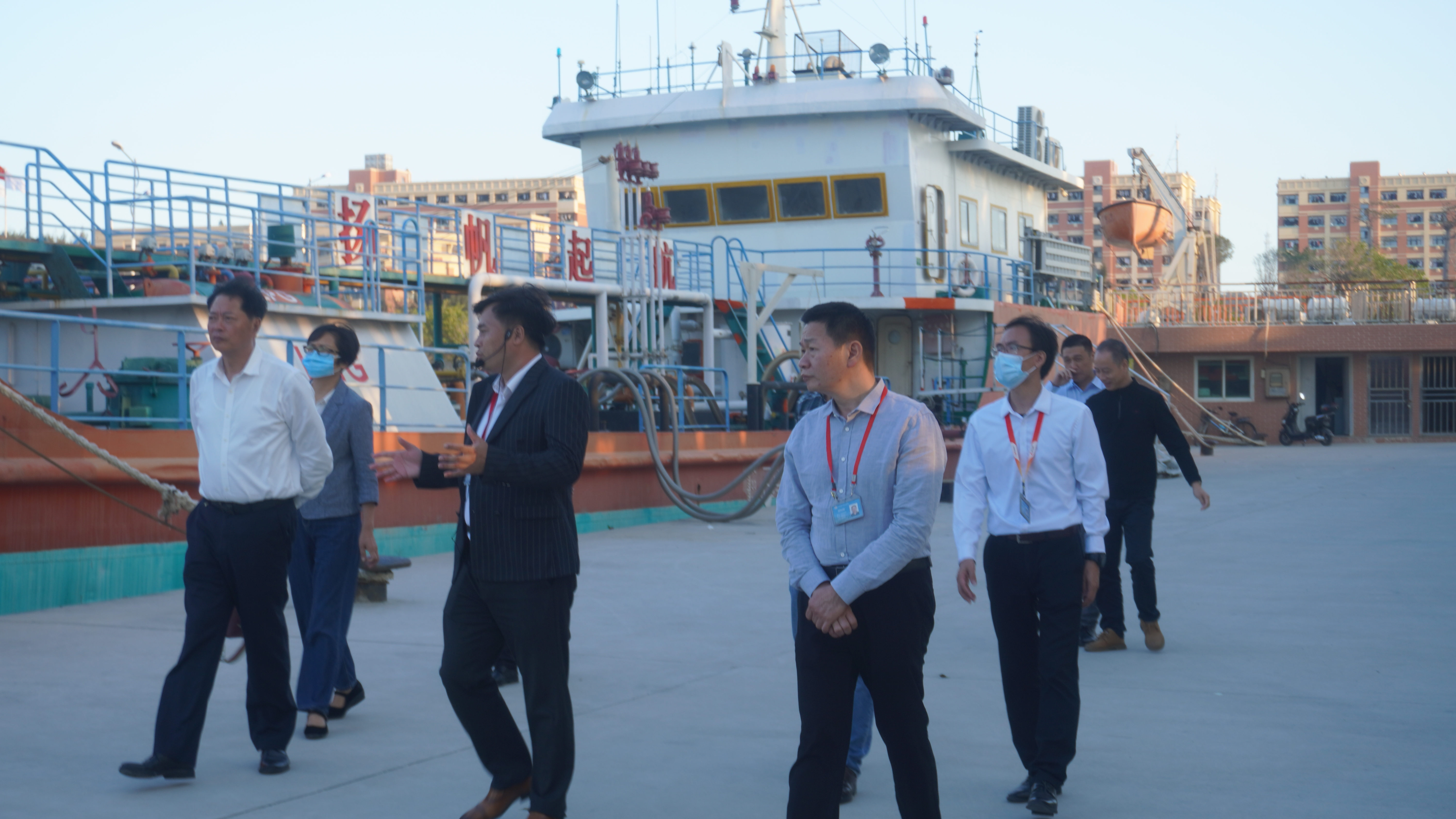 庄书记一行先后参观了我校360°全视景船舶操纵模拟实训基地、海权红馆、实训船“育航”号、国防科技馆及正在建设中的海边训练基地等,详细了解了我校的招生就业、服务培训、师资队伍、基础建设以及实践教学建设情况,与我校领导就办学相关情况进行了深入交流。庄书记一行在调研中对蔡天真董事长的办学情怀,以及学校近几年来立足规模扩张和内涵建设所取得的跨越式发展成果表示了高度的肯定。