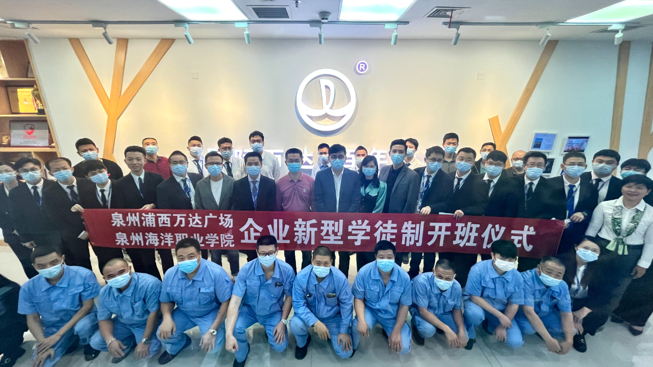 (新闻中心讯 对外合作部张曾真供稿 校党委宣传部报道)2022年11月16日上午,首届“企业新型学徒制”培训班开班仪式在泉州浦西万达广场6楼会议室隆重举行。泉州市丰泽区人力资源社会保障局副局长许开兴、泉州市丰泽区人力资源社会保障局就业培训股股长曾华林、泉州海洋职业学院副校长陈永鑫、泉州浦西万达商业物业管理有限公司总经理林建阳等领导嘉宾,以及全体学员参加开班仪式。浦西万达广场企业新型学徒制培训班班主任林真真主持仪式。