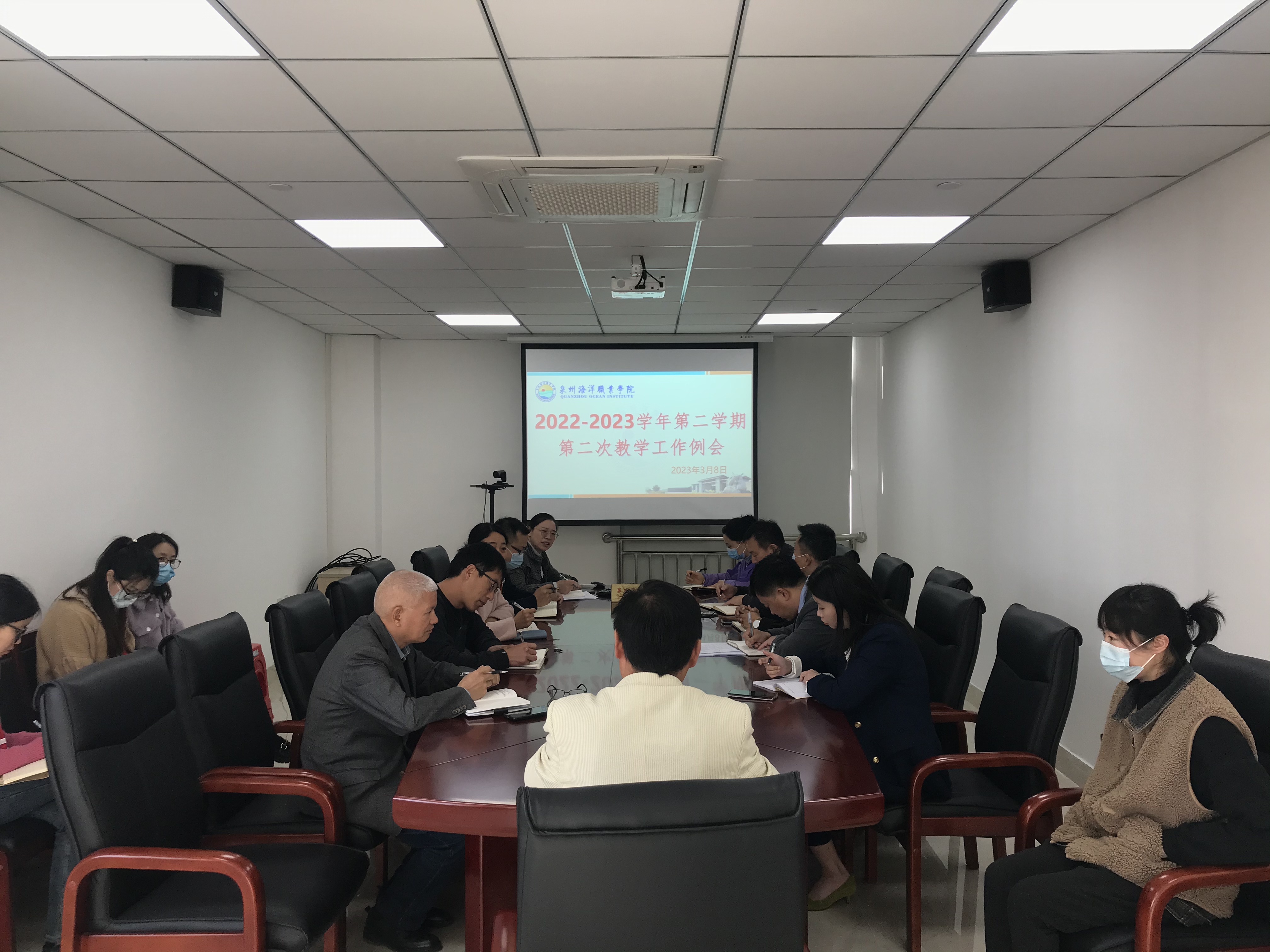 会上,教学副校长向与会人员提出相关岗位工作的要求,并就常态化工作做了重要部署。教务处处长蔡小莲围绕常规教学的开展、产教融合典型案例申报、课程建设、专业建设、信息化建设以及后一段工作安排进行了全面的阐述。教学督导处李国锋处长从日常督导和专项督导两方面就教学督导工作做了说明和安排。各二级学院从岗位实习指导教师安排、学生管理、教师休息室的设置、学风建设等方面提出了合理化建议。