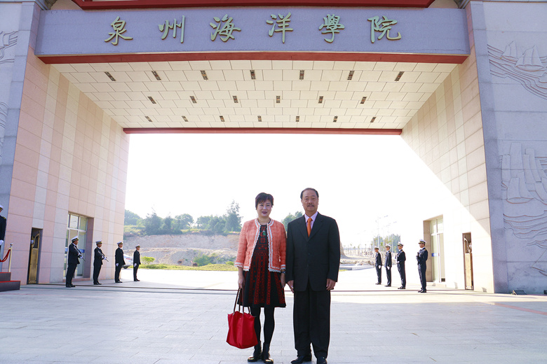 荣智丰董事长一行先后参观了学院海丝文化墙、轮机实训中心、水上训练中心、田径场、水系景观、教学楼和餐厅楼等基础设施,并参观了海洋科技展厅、世界特种船舶展厅和海洋文化展厅三个校内展厅。
