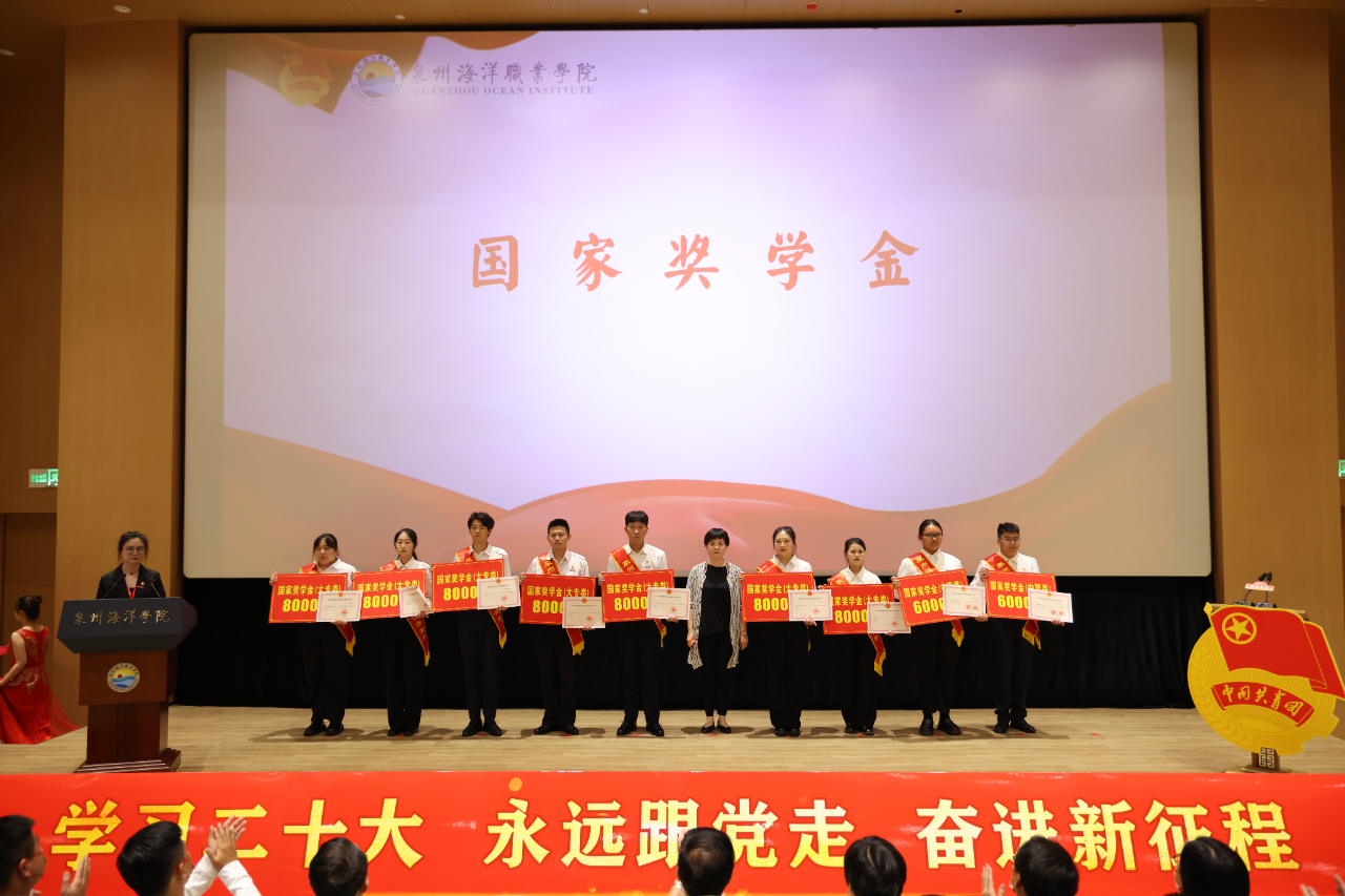 ▲党委书记郑艳为国家奖学金获得者颁奖