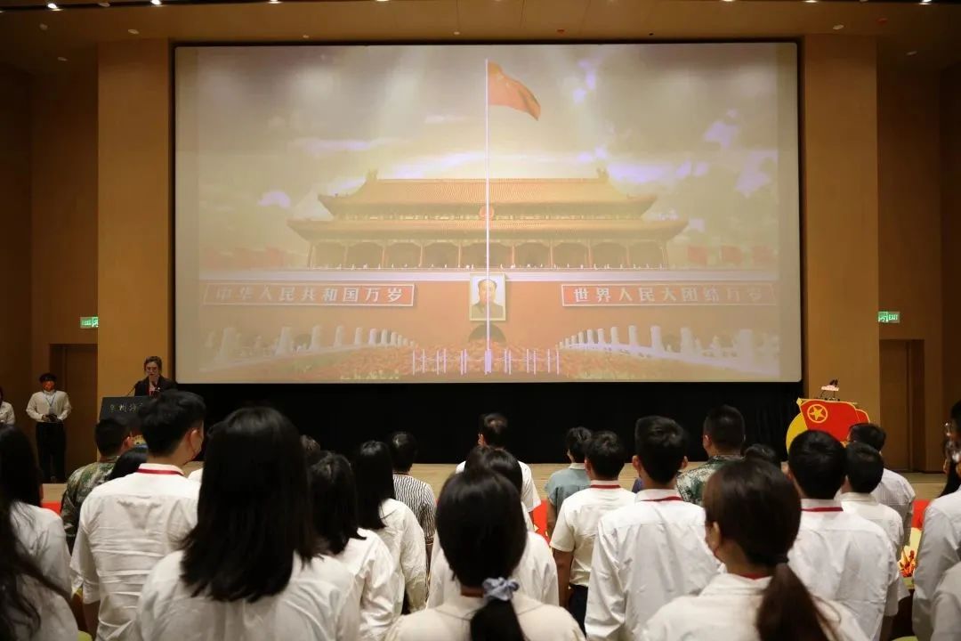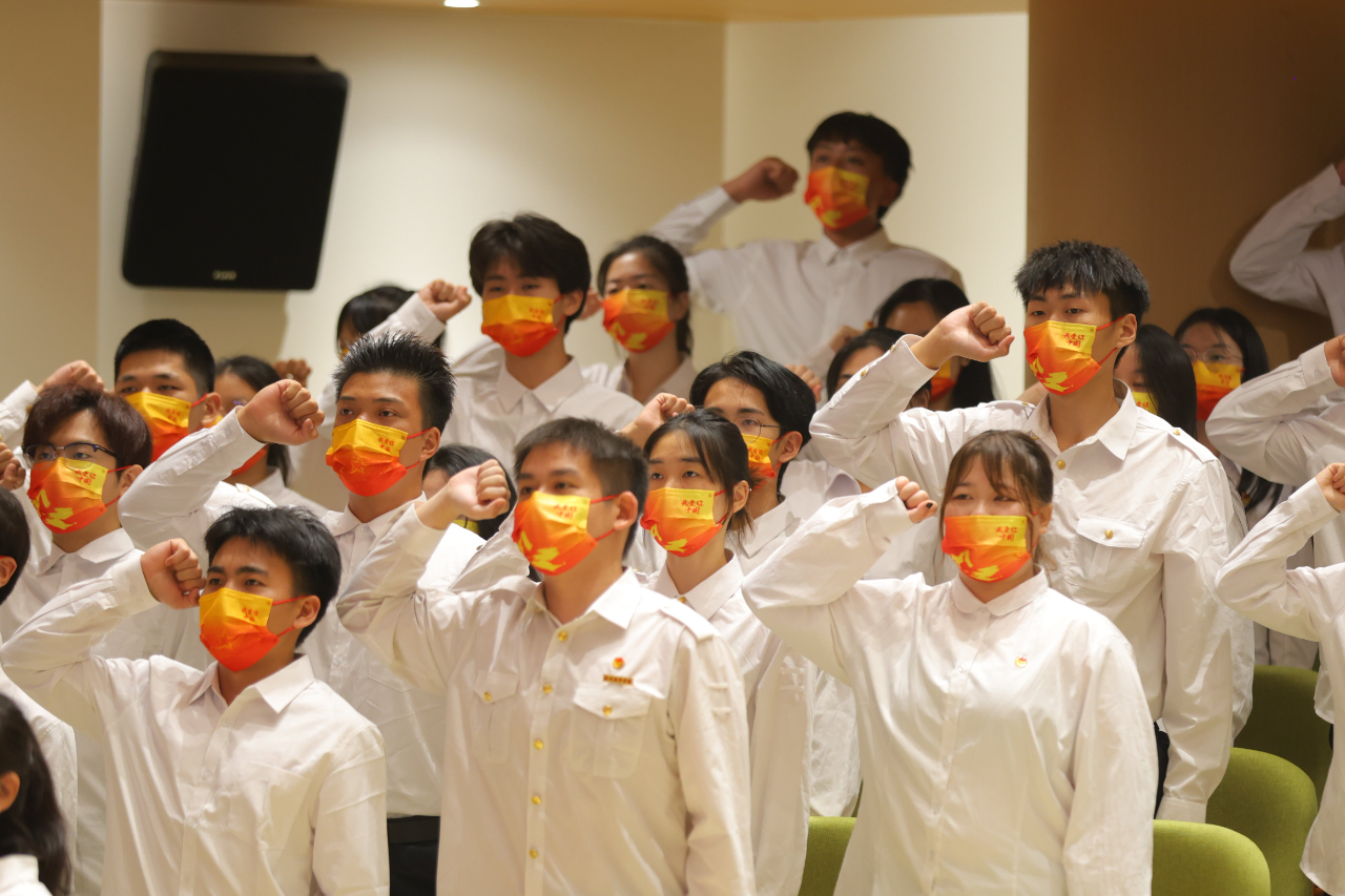 ▲航海交通学院团委书记陈欣欣带领团员重温入团誓词