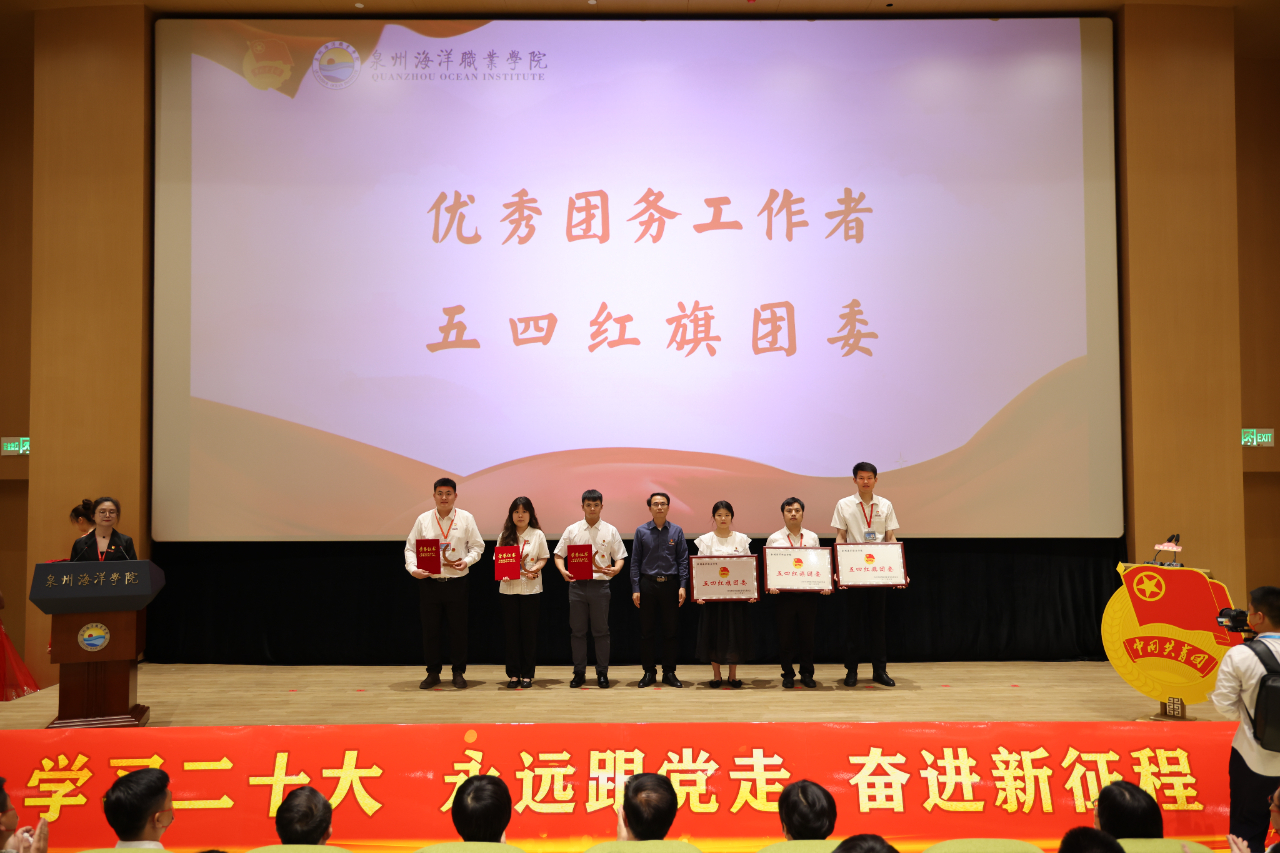 (新闻中心讯 学生工作与发展部供稿 校党委宣传部报道)为深入贯彻落实党的二十大精神和习近平总书记关于青年工作的重要思想,充分发挥先进团学组织和团员青年的榜样示范作用。泉州海洋职业学院2023年五四表彰大会,在图书馆报告厅隆重举行。莅临大会的各位领导有:泉州海洋职业学院校长庄伟廉,党委书记郑艳,副校长黄瑞梅,副校长钱学东,副书记、副校长李明灿,副校长栾璋宝。参加本次大会的还有各院、部、中心的负责领导,各二级学院团委老师、全校各级团学青年代表400余人。