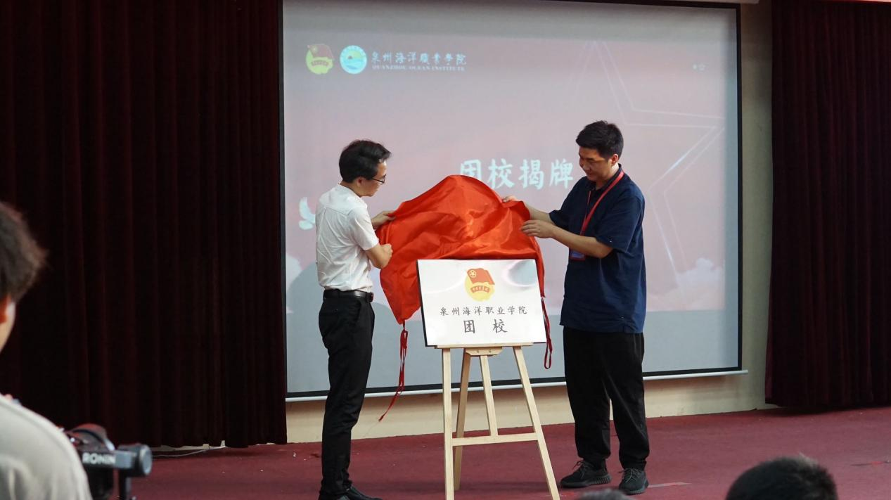 我校党委副书记、副校长李明灿,学工部部长、团校校长张君为泉州海洋职业学院团校揭牌。