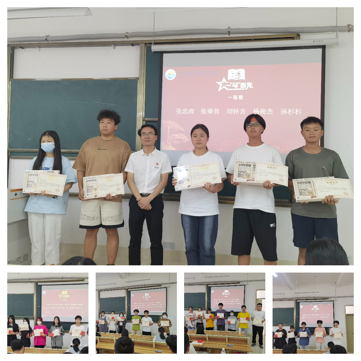 本次竞赛分为学习、初赛、决赛三个阶段。在学习与初赛阶段,马克思主义学院精心设计“一‘马’当先”知识竞赛题库,以学习通APP为依托开展学习竞答活动,在全校掀起了学习马克思主义理论的热潮。经过自主学习和初赛,有54名优秀选手成功突围,晋级校级决赛。6月7日,马院在教学楼4412教室举行了线下集中网络竞答。经过激烈角逐,最终决出张忠政等38位同学分别荣获一、二、三等奖。接下来,马院将从获奖同学中进一步遴选种子选手参加集中培训,为省赛做好准备。