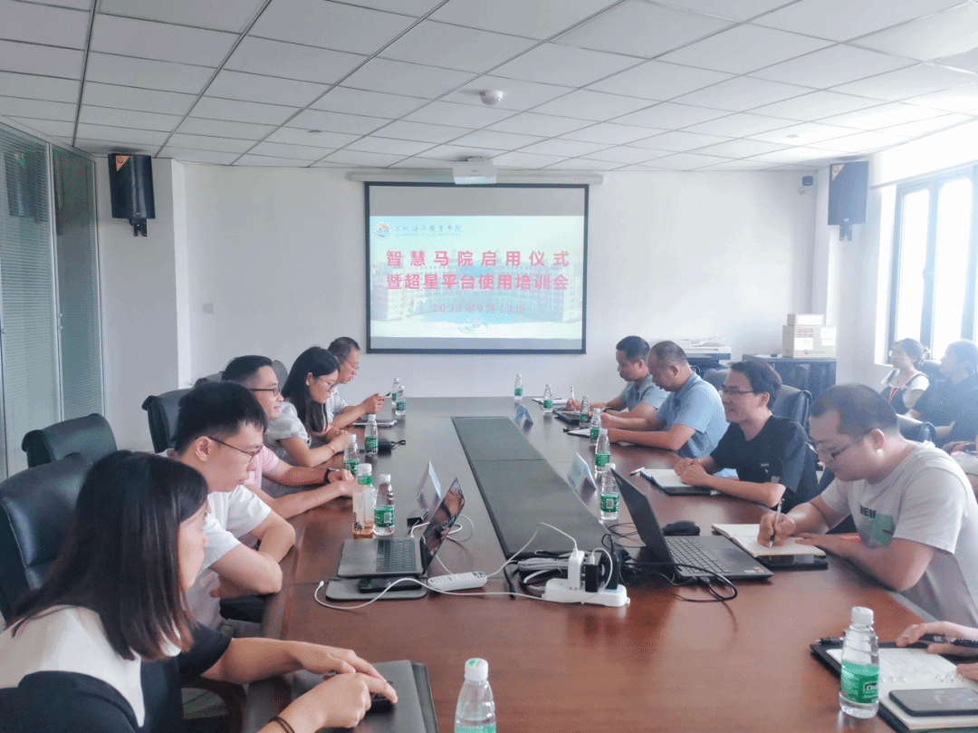 超星集团相关负责人介绍了“智慧马院”平台建设的基本情况,着重演示了该平台各板块的基本功能和使用方法。与会人员围绕页面设置、师生互动、教学评价以及无纸化考试等功能进行了深入交流。