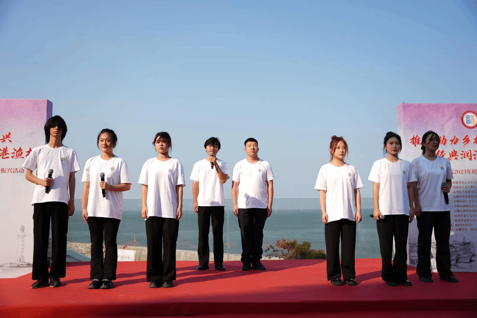 活动现场,郑艳书记介绍了我校涉海办学特色以及在乡村振兴、海洋文化传承与发展等方面的成果。我校学子以及泉州师范学院、泉州市演讲与口才学会、石狮美丽海岸志愿者协会的表演者们进行了精彩的诗朗诵。“山海下刺桐花开”“海纳百川,我心予海”“志愿心不改,奉献之路永不缀”……结合祥芝镇的美丽港湾为背景,现场观众在一首首深情激昂的诗歌中,感受先贤哲人的伟大情怀,与当代建设者、创造者同频共振,领略国家通用语言文字的独特魅力。