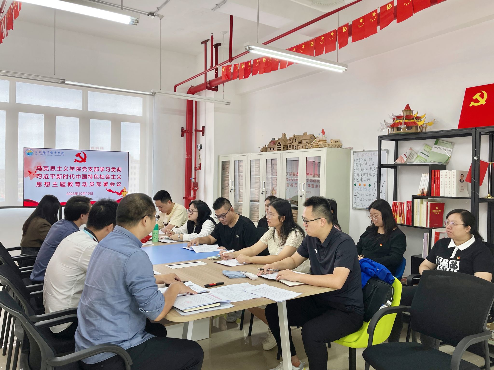 (新闻中心讯 马克思主义学院阮玲玉供稿 校党委宣传部报道)10月10日,马院党支部召开学习贯彻习近平新时代中国特色社会主义思想主题教育专题部署会。校党委副书记、副校长、马克思主义学院院长李明灿出席并主持会议,马院全体教职工参加会议。
