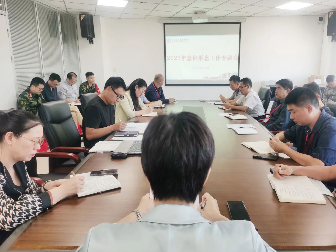 (新闻中心讯 校党委宣传部供稿 校党委宣传部报道)为深入贯彻落实意识形态工作责任制,加强党对意识形态工作的领导,了解学校意识形态安全中的漏洞、难点和堵点。10月12日,我校召开2023年意识形态工作专题会。各部门负责人,各二级学院院长、书记、副书记参加会议。会议由校党委书记郑艳主持。