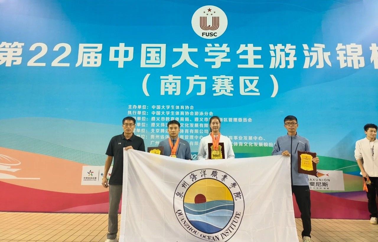 (新闻中心讯 党委宣传部供稿 校党委宣传部报道)近日,第22届中国大学生游泳锦标赛(南方赛区)在贵州省遵义市盛大举行。我校艺术体育学院院长孙玉坤与教师蔡清泽率领的校游泳队在比赛中凭借出色的表现脱颖而出,取得了4金1铜、1个第四名的好成绩。