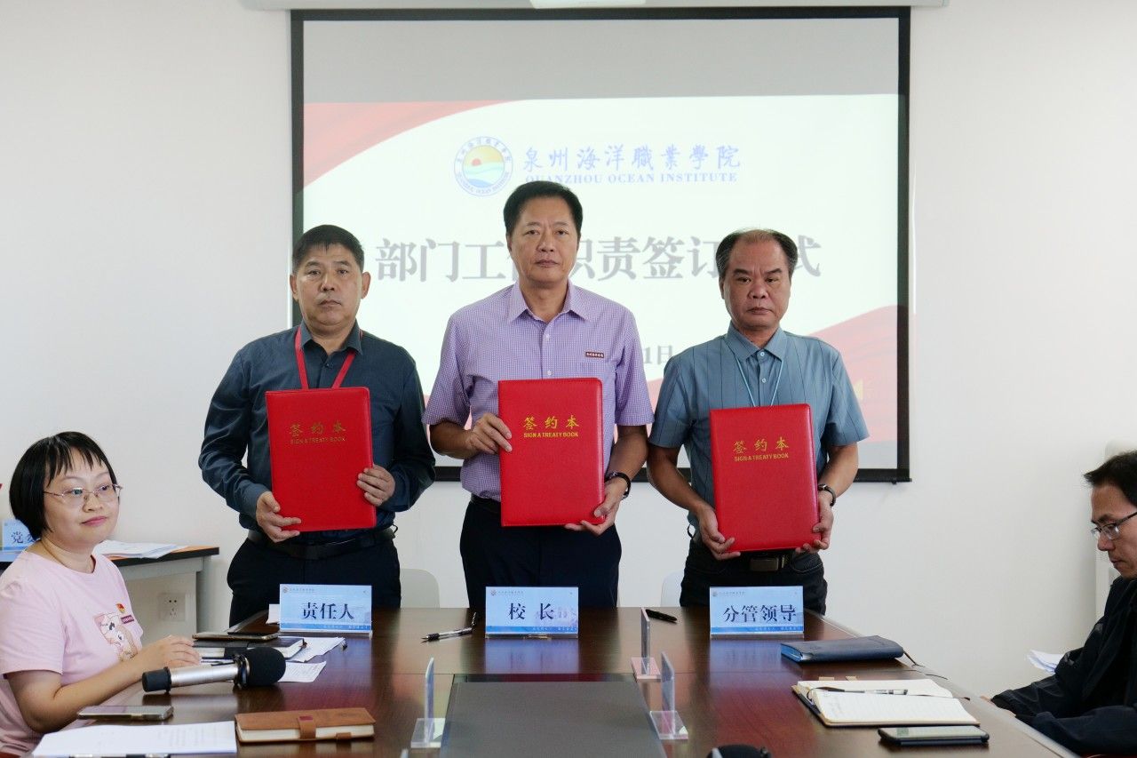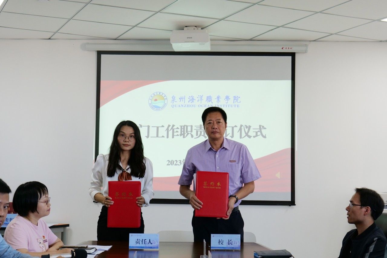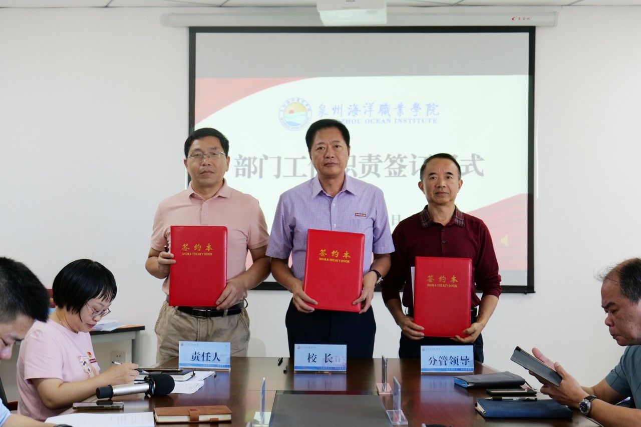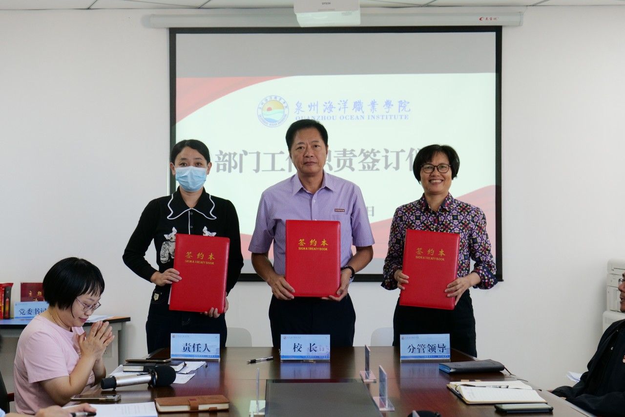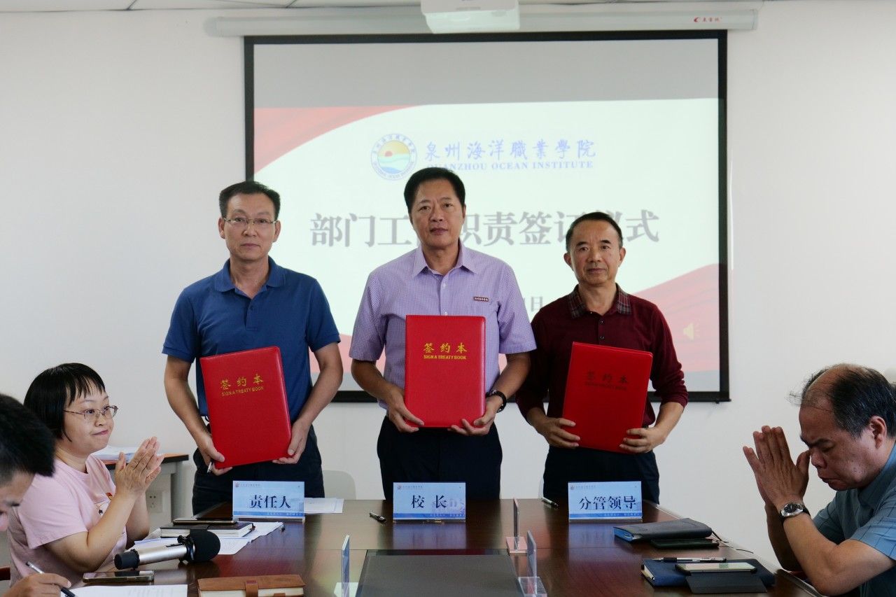 (新闻中心讯 党政办公室席文晋供稿 校党委宣传部报道)为进一步明确工作职责,强化责任意识,推动学校各项事业高质量发展,10月31日下午,学校在图书馆西侧813会议室举行部门工作职责签订仪式。会议由校长庄伟廉主持,学校党政领导、各行政部门负责人、二级学院院长、书记参加签订仪式。