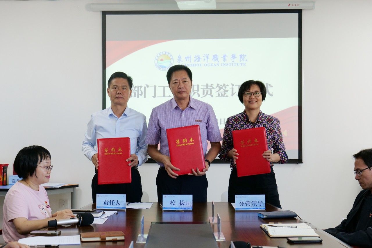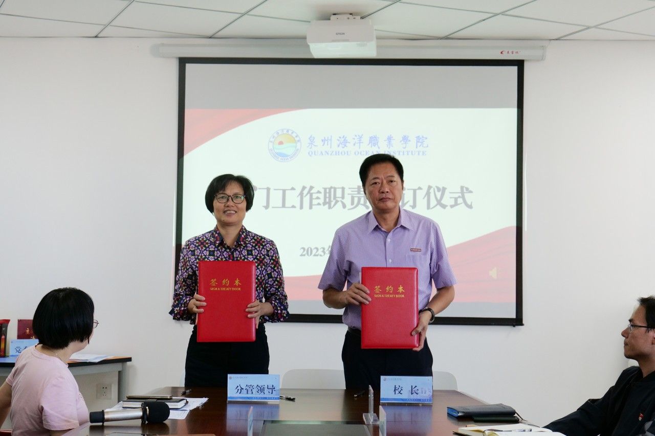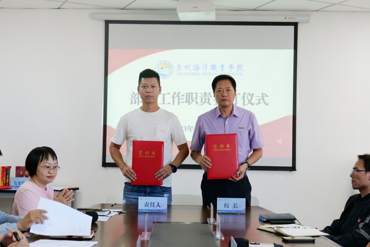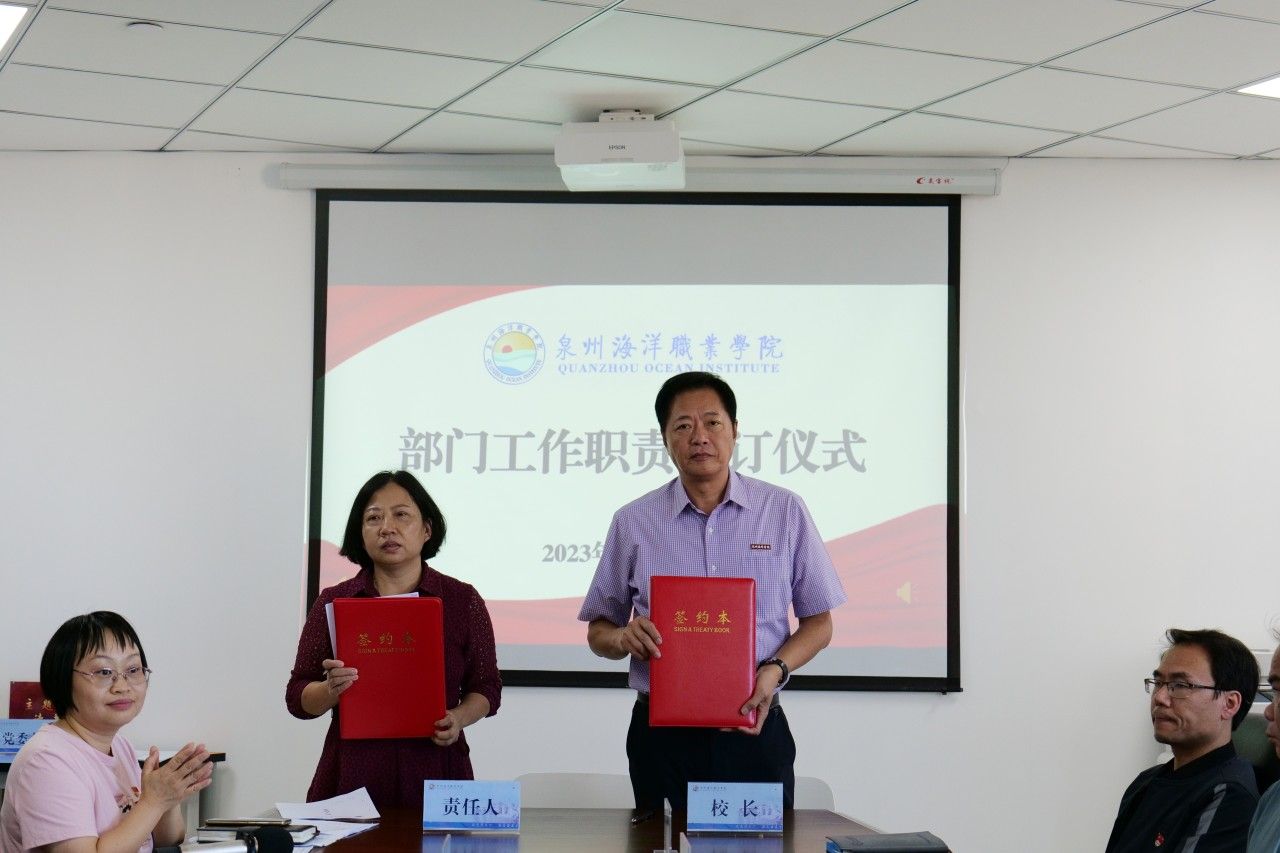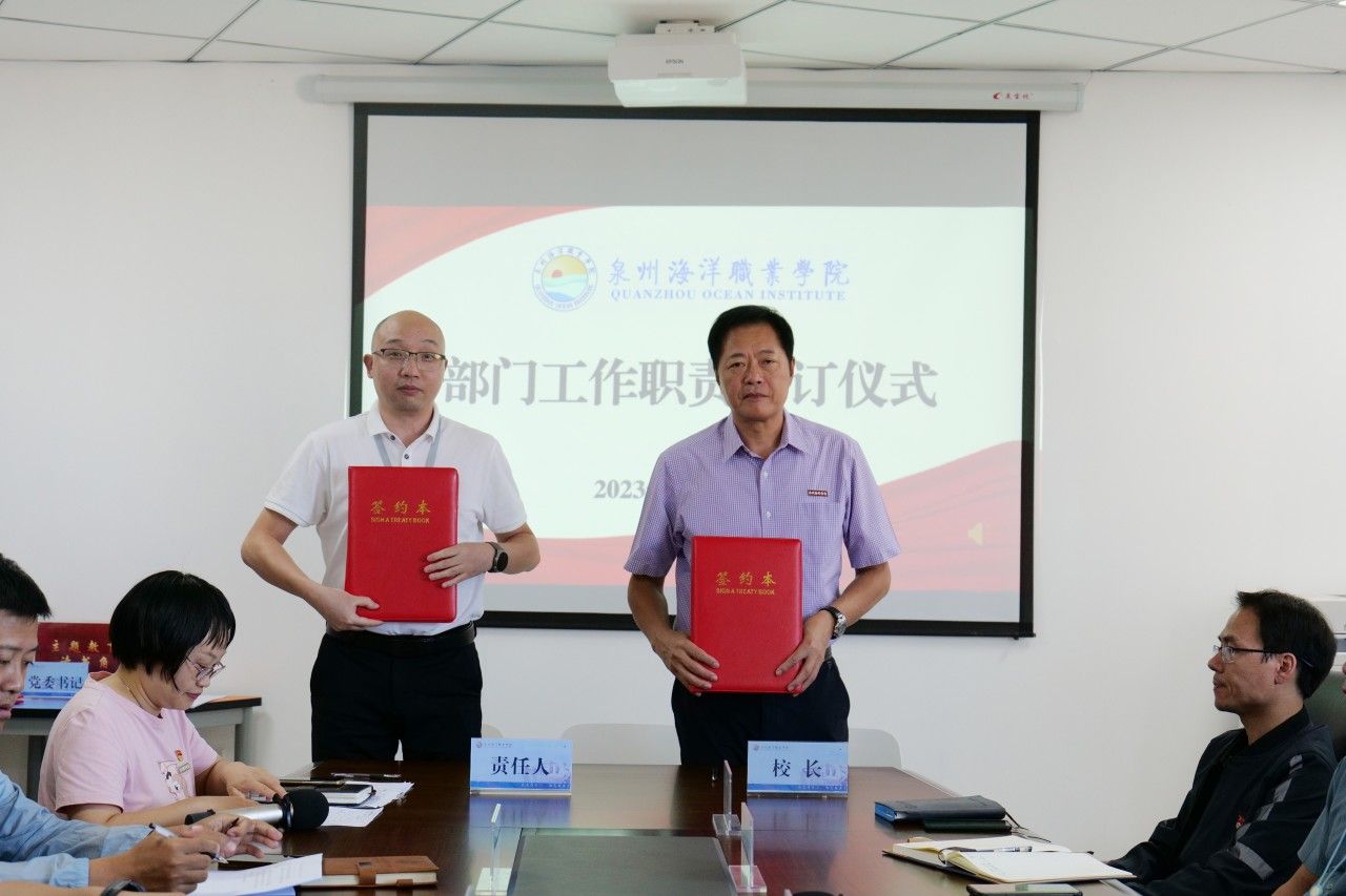 (新闻中心讯 党政办公室席文晋供稿 校党委宣传部报道)为进一步明确工作职责,强化责任意识,推动学校各项事业高质量发展,10月31日下午,学校在图书馆西侧813会议室举行部门工作职责签订仪式。会议由校长庄伟廉主持,学校党政领导、各行政部门负责人、二级学院院长、书记参加签订仪式。