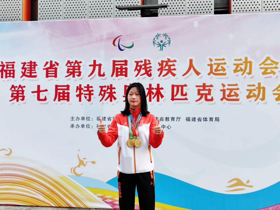 今年4月初,年仅18岁的苏林珠在福建省第九届残疾人运动会暨第七届特殊奥林匹克运动会第一阶段比赛项目中斩获了5枚金牌,成为了本次比赛中夺冠最多的运动员。“比赛时,妈妈对我的期望是拿下一枚金牌,但我的目标是拿下所有项目的金牌。最终,我真的做到了。”苏林珠在接受石狮日报记者采访时说道。本届残疾人运动会暨第七届特殊奥林匹克运动会是苏林珠自2016年被选拔参加省残联游泳集训以来成绩最好的比赛,也是她最难忘的比赛。