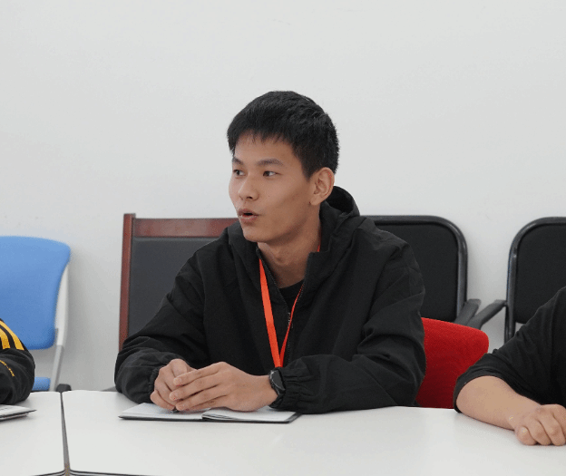 指导老师林芳微、缪洁,辅导员郑鸿杰、许婉佳等参会人员,纷纷发言为黄剑辉、潘越两名选手加油、鼓劲,对学校领导关心、支持、重视大赛准备表示感谢,共同祝愿他们挑战自我、崇尚荣誉、勇争一流、再创佳绩!