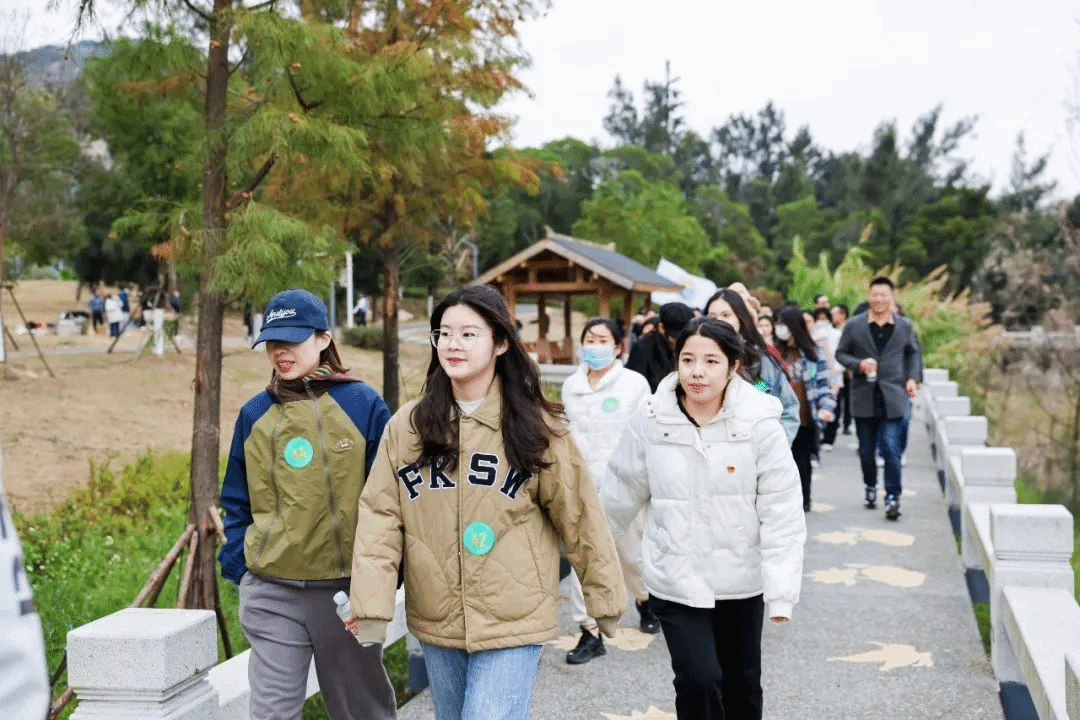 花海谷林荫夹道、满目苍翠欲滴,让人心醉神迷,临水凭栏、盈盈湖面与嶙峋怪石相映成趣。在这片如诗如画的“塔山水库”木栈道上,一场百人4公里健走比赛正式拉开了序幕。随着发令枪响,各工会小组的老师们精神抖擞、分批出发,大家争先恐后,你追我赶,用脚步和激情丈量着郊野公园的多彩美景和清幽环境,同时又相互鼓劲、相互加油,用团结和协作体验着运动的快乐。