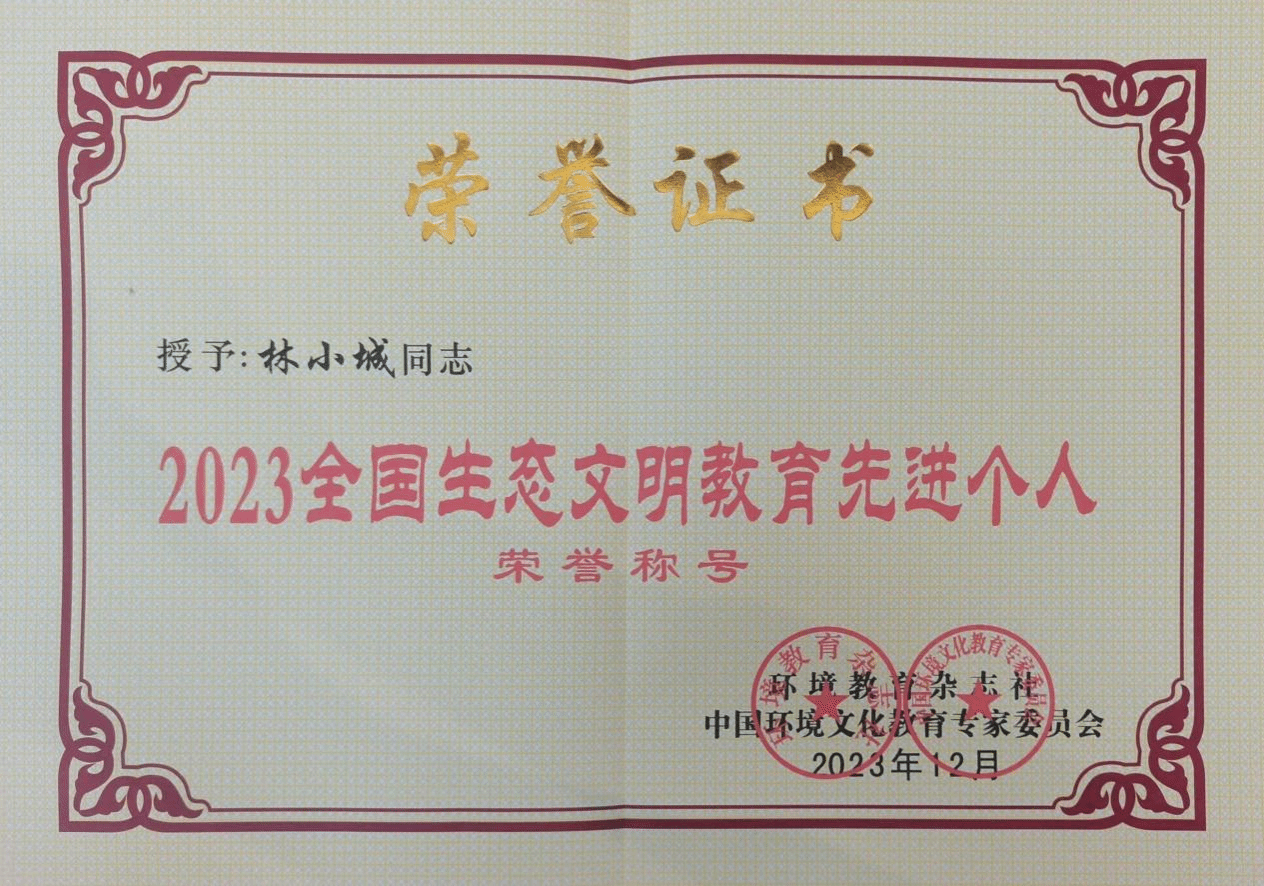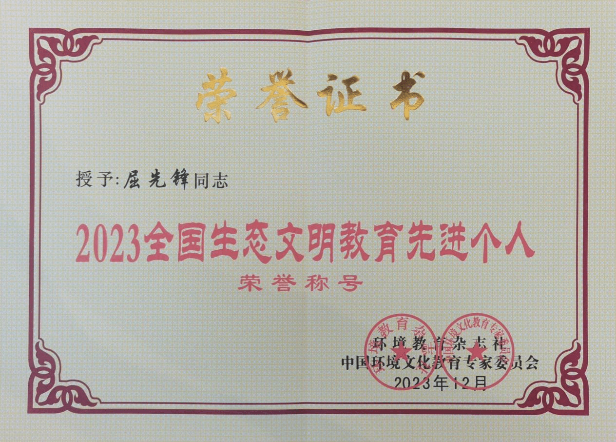 (新闻中心讯 校团委屈先锋供稿 校党委宣传部报道)1月12日,由中华人民共和国生态环境部主管,中国环境文化教育专家委员会和《环境教育》杂志社联合主办的第八届环境教育年会在天津盛大举行。我校荣获了“2023全国生态文明教育特色学校”的殊荣。同时,校团委书记、学工部副部长屈先锋和后勤处副处长林小城被评为“2023全国生态文明教育先进个人”。