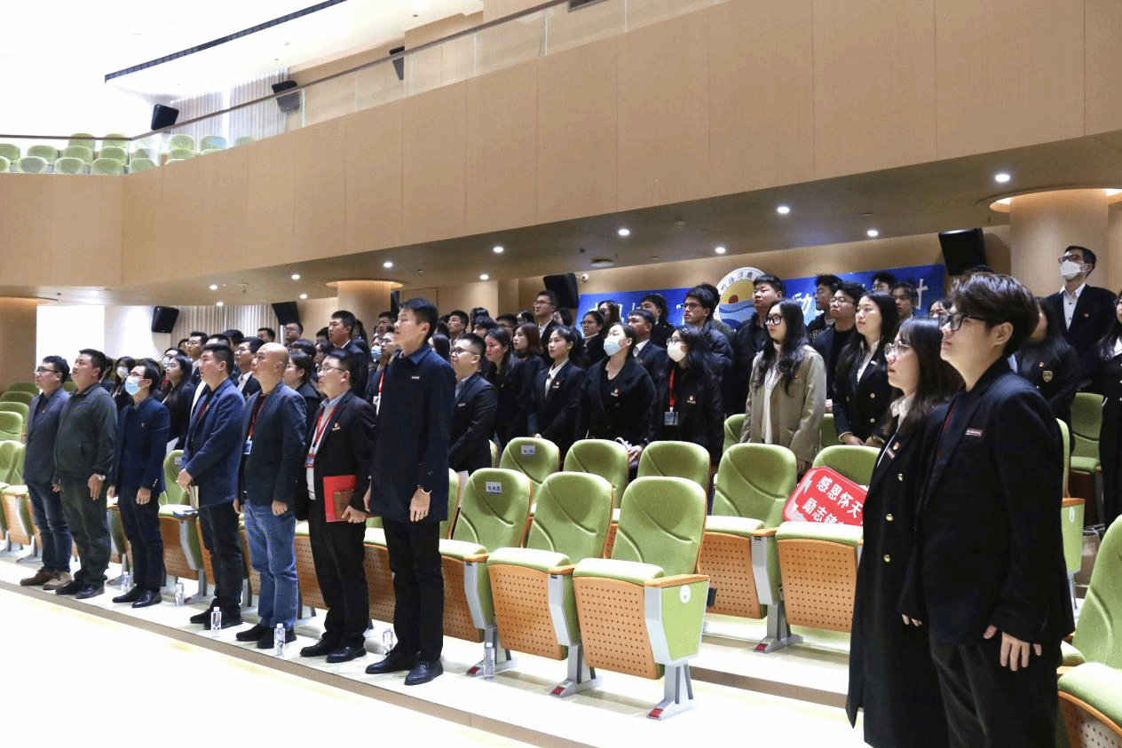 会议伊始,全体起立奏唱国歌。
