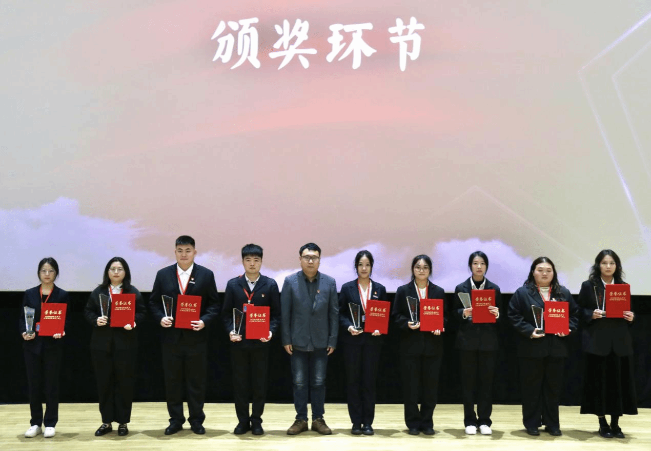 党委宣传部副部长贾夏雪、保卫部部长李艺鹏分别为“十佳辅导员”“学工年度人物”获得者颁发奖杯、荣誉证书。