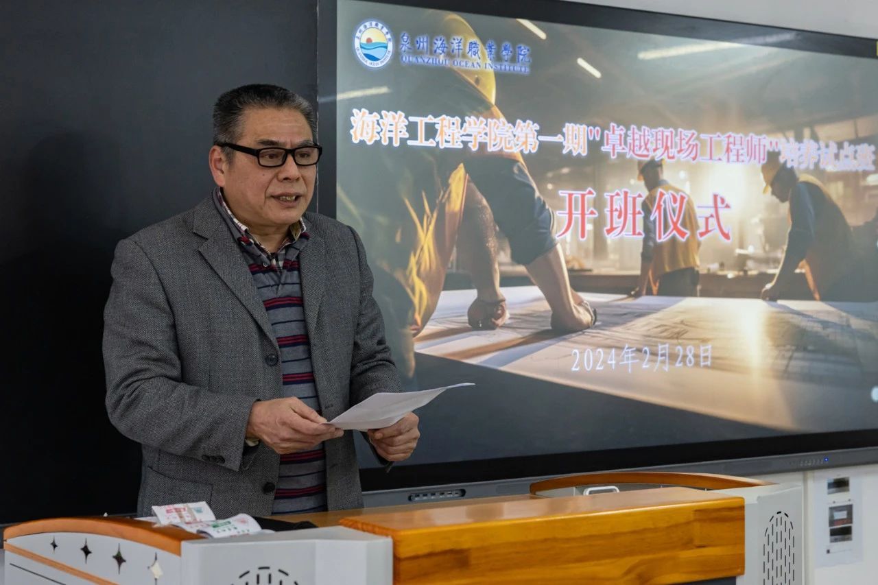 (新闻中心讯 海洋工程学院供稿 校党委宣传部报道)2月28日下午,泉州海洋职业学院海洋工程学院第一期“卓越现场工程师”培养试点班开班仪式在3号教学楼3204教室举行。