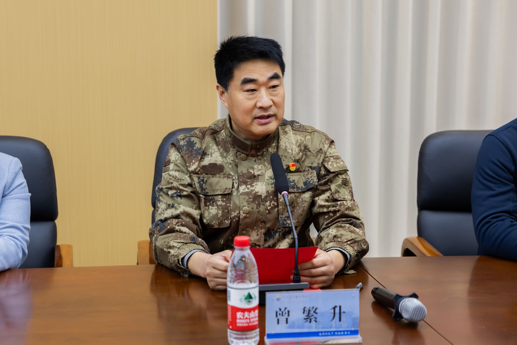 郑艳书记为全体准军人佩戴绶带。