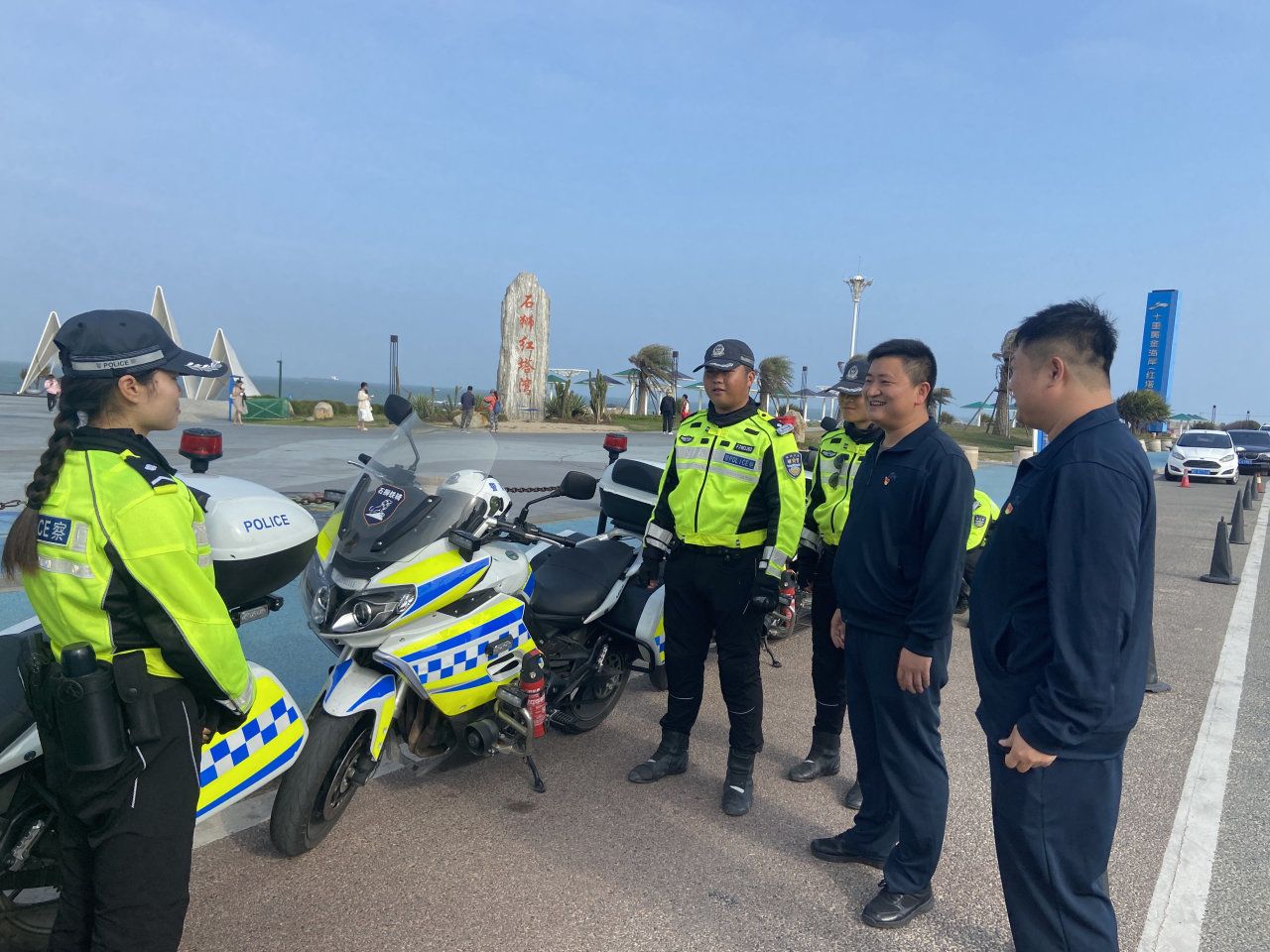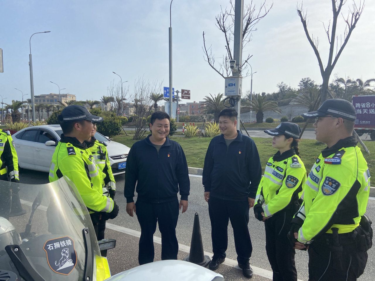 在永宁派出所,相关领导介绍了派出所的工作职责与人才需求。苏良城书记介绍了学校的教育资源及人才培养方向。双方就加强校警合作、提供实践机会及培养高素质人才进行了深入讨论。随后,苏书记一行实地参观了永宁红塔湾,深入了解了我校学生在铁骑队的工作情况。他特别鼓励同学们要时刻强化安全和服务意识,不断提升自己的履职能力,以更好地履行社会职责。