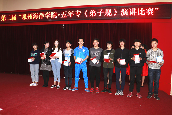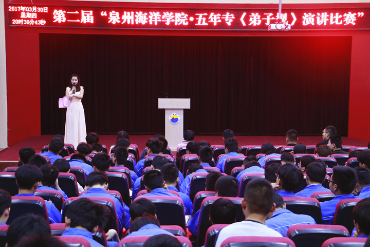 新闻中心讯(党政办编辑)2017年3月30日晚,由泉州海洋学院基础部主办的“弟子规”演讲比赛在学院2204多功能报告厅举行。经过层层筛选,共有14名五年专选手到场参加了此次比赛。