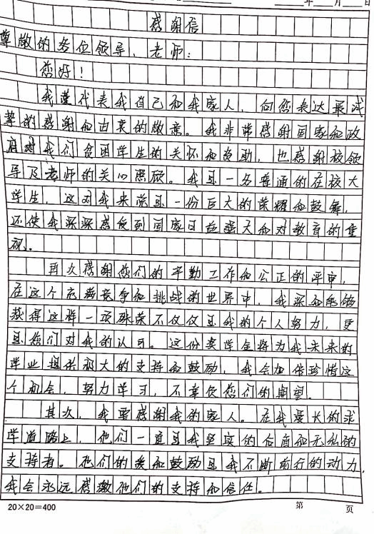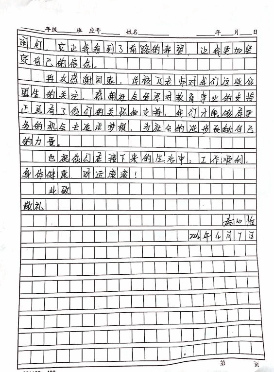 家长学生们纷纷通过手写感谢信