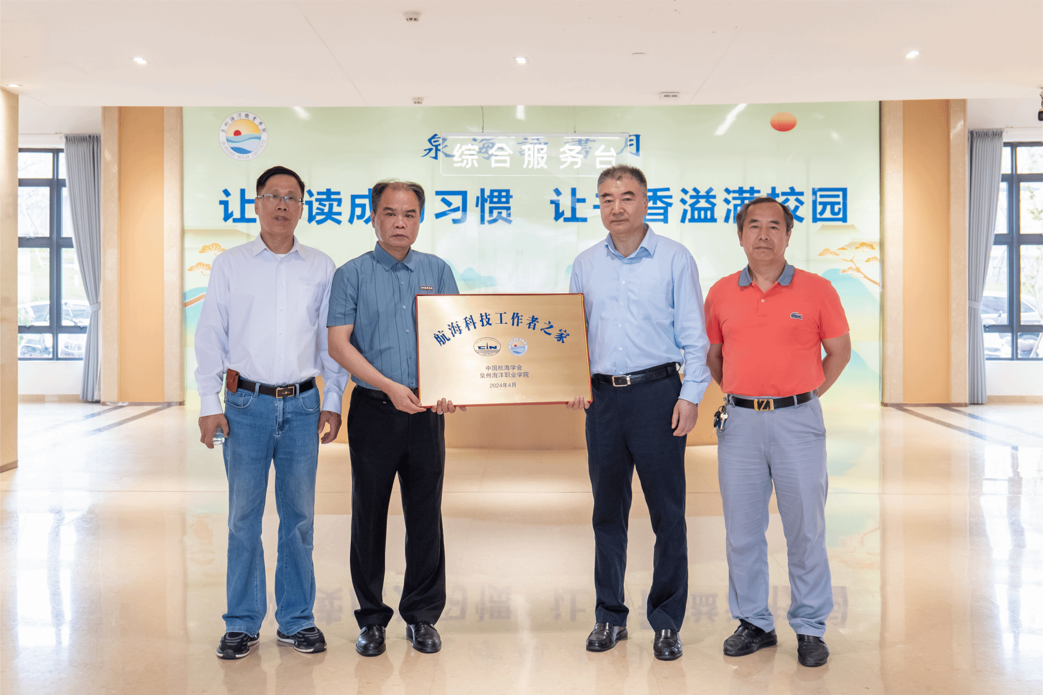 刘锦辉、阎晓波、陈明光共同为中国航海学会与泉州海洋职业学院联合共建项目“航海科技工作者之家”揭牌。