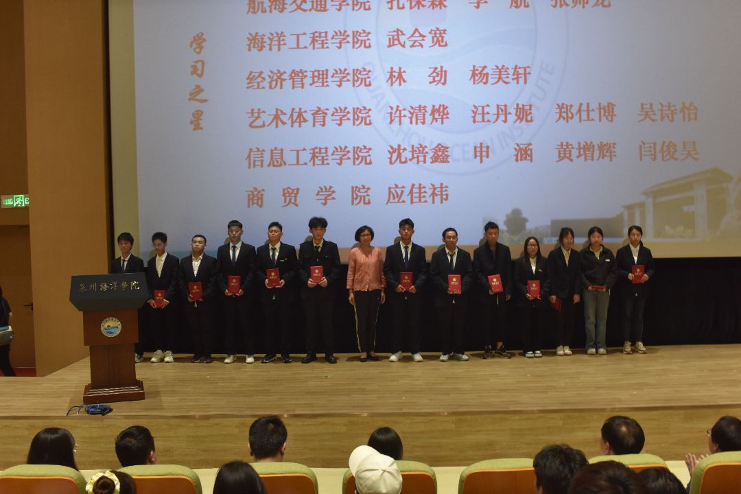 ▲李明灿副校长为泉海读书月“知识竞赛”获奖学院代表颁奖